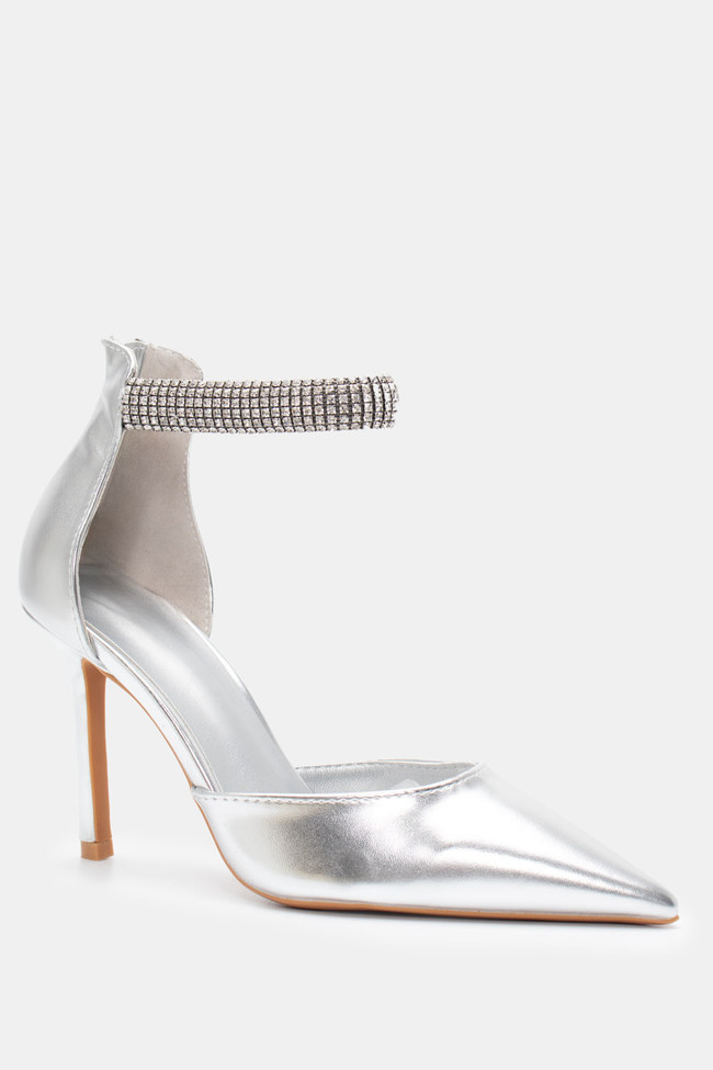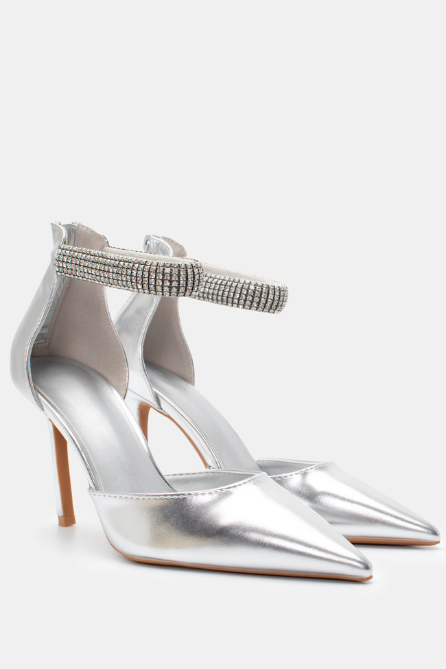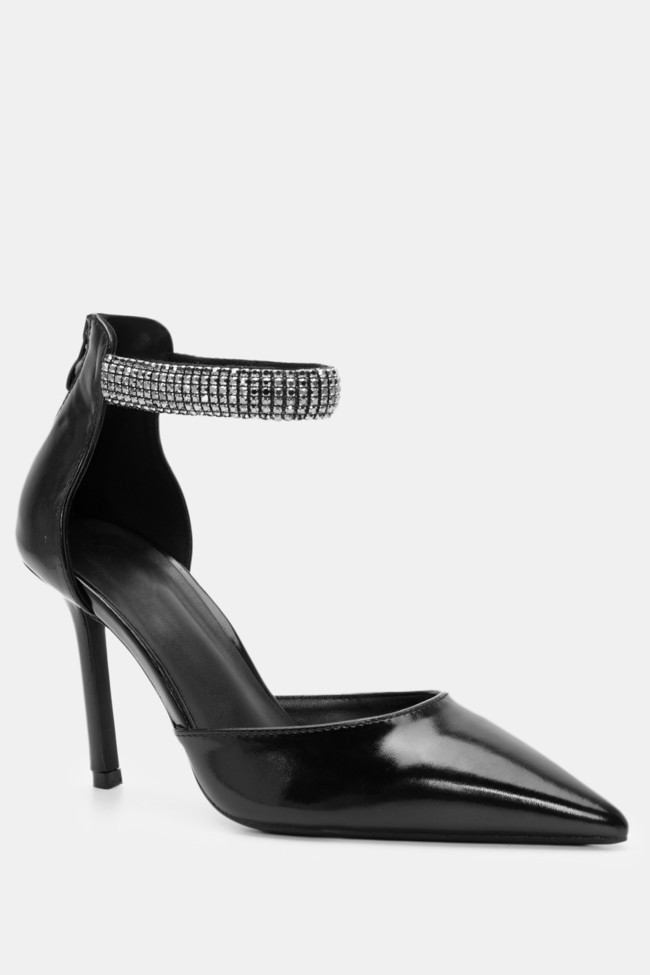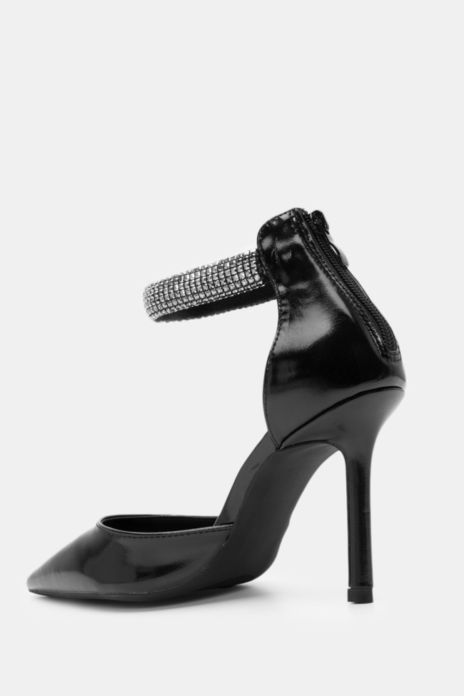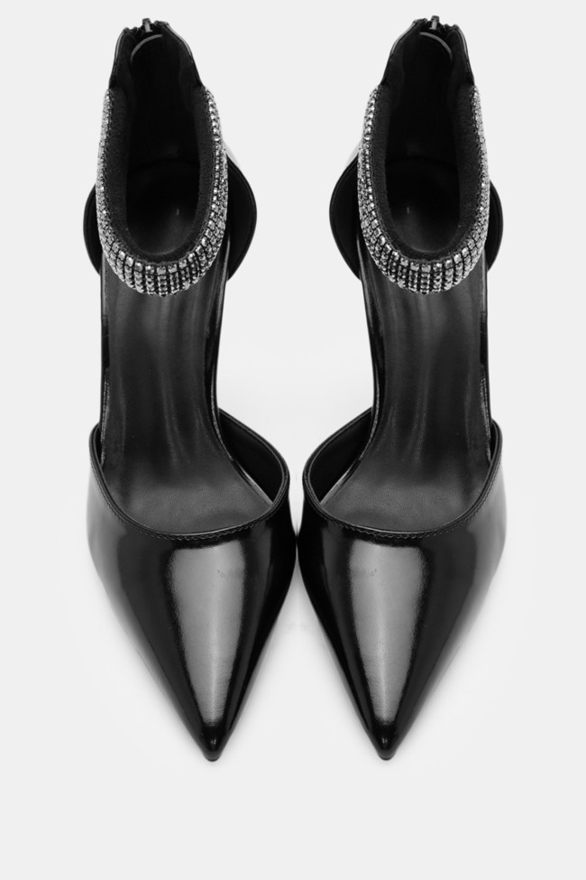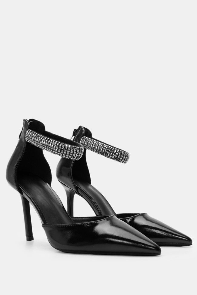 Γόβες Μυτερές με Φερμουάρ & Μπαρέτα Από Strass