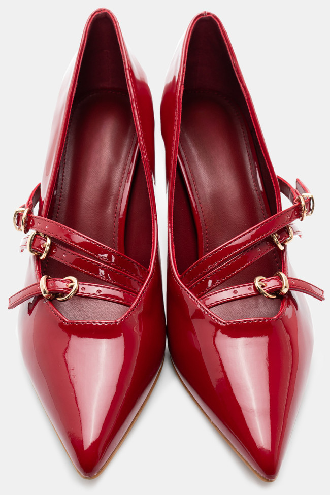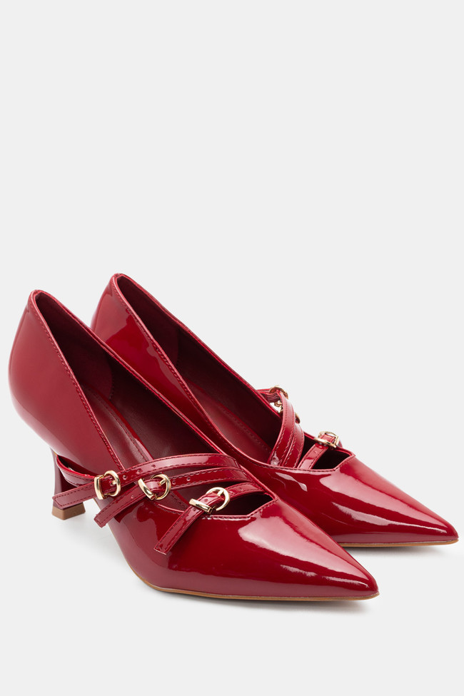 Γόβες Μυτερές με Μπαρέτα & Διπλά Λουράκια