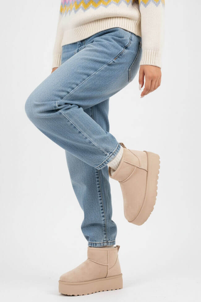 Booties with Double Soles, Internal Fur Lining & Decorative Chain