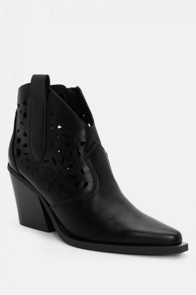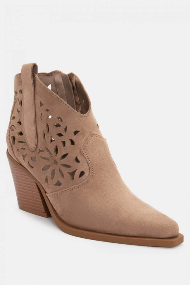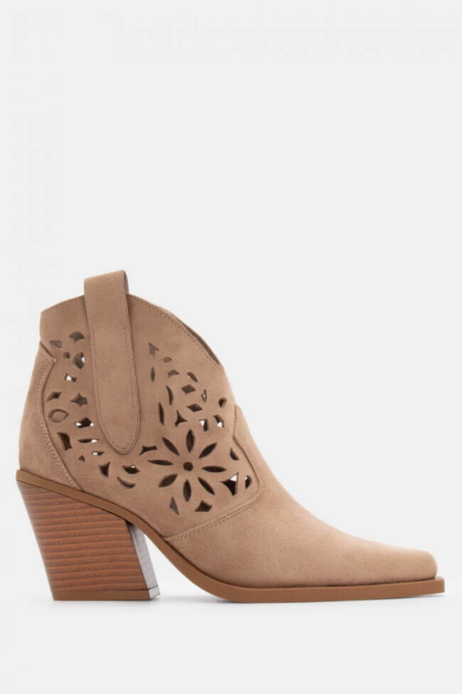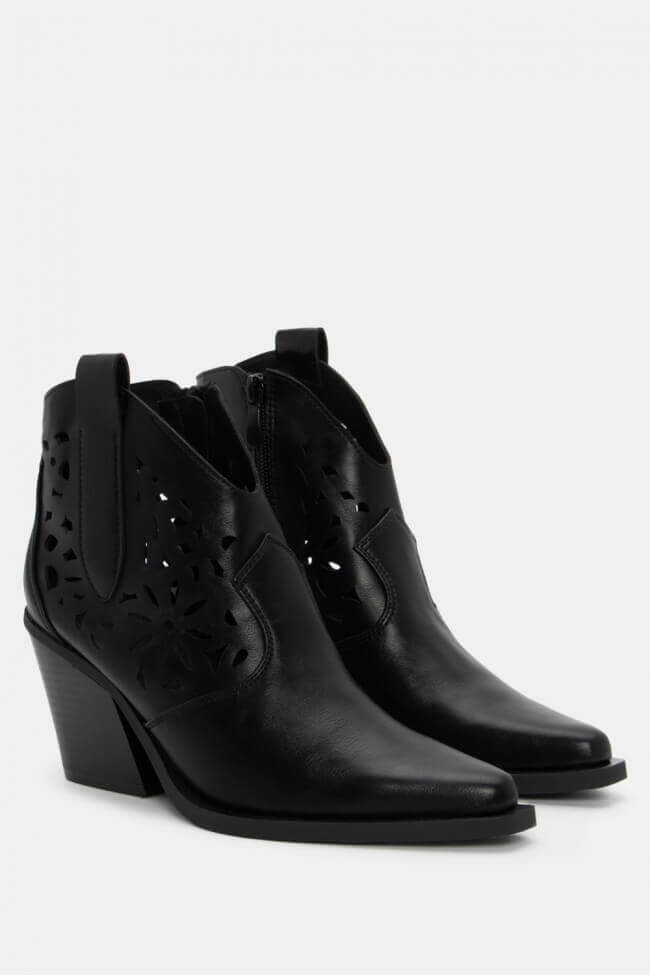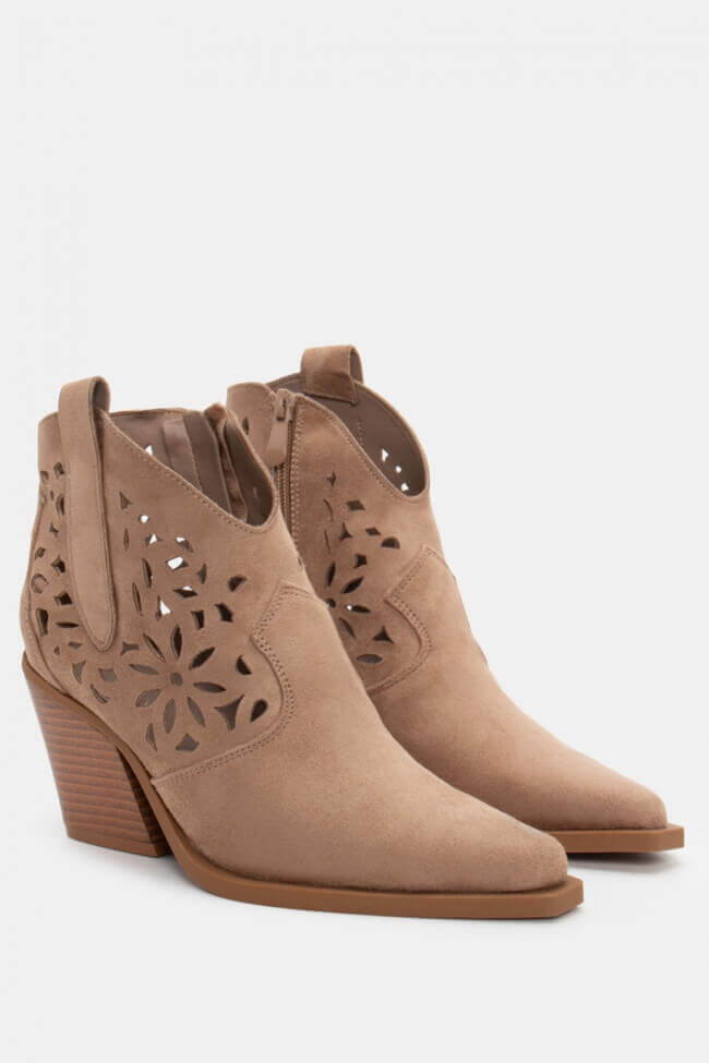 Când alegi botine cu toc mic, stilul tocului face toată diferența.