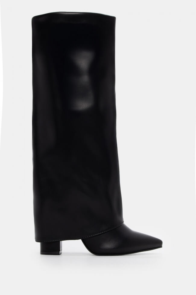 Cizme cu Efect de Manșetă Pliabilă & Fermuar Decorativ