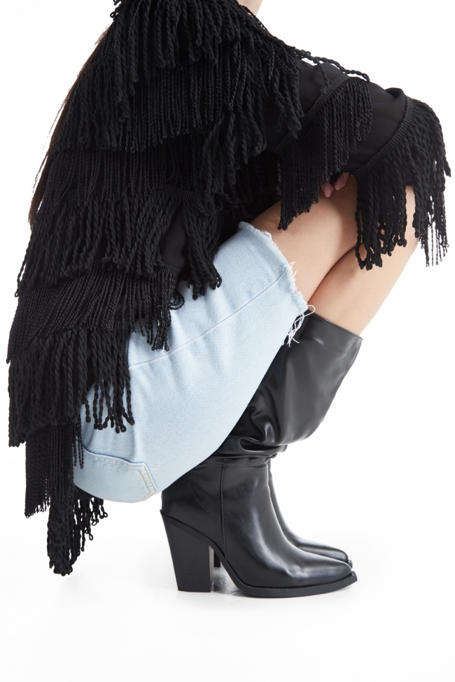 - Strălucirea ieșirii de noapte: Îndrăznește cu cizme înalte cu toc gros și o rochie din piele sexy. Vei atrage cu siguranță toate privirile, indiferent ce!