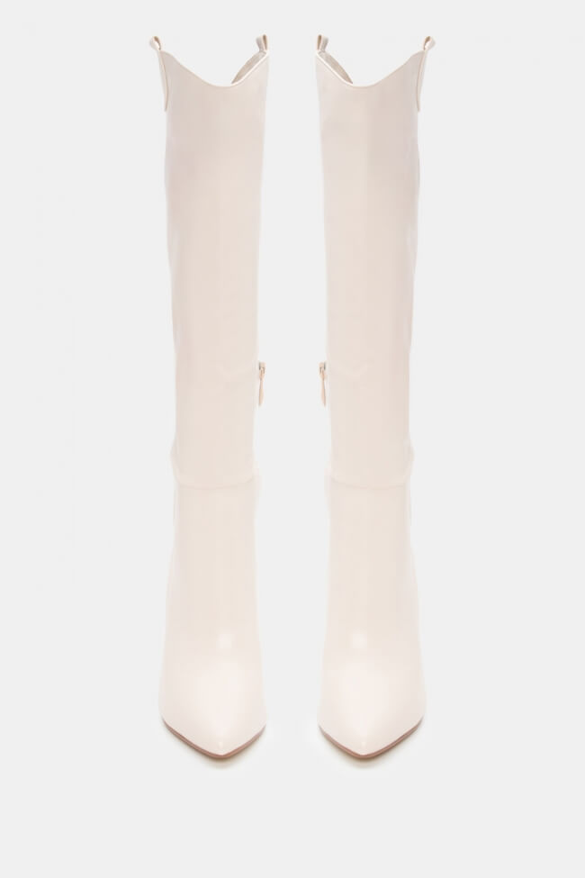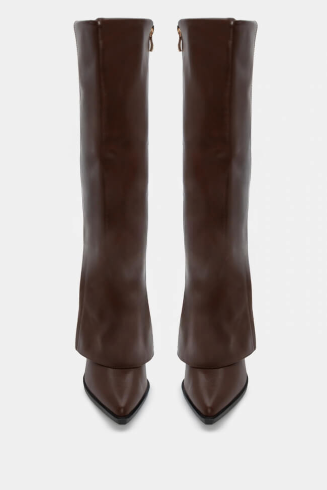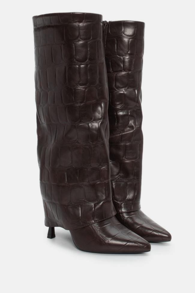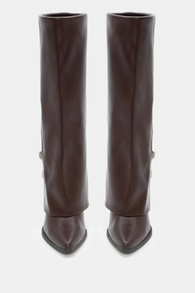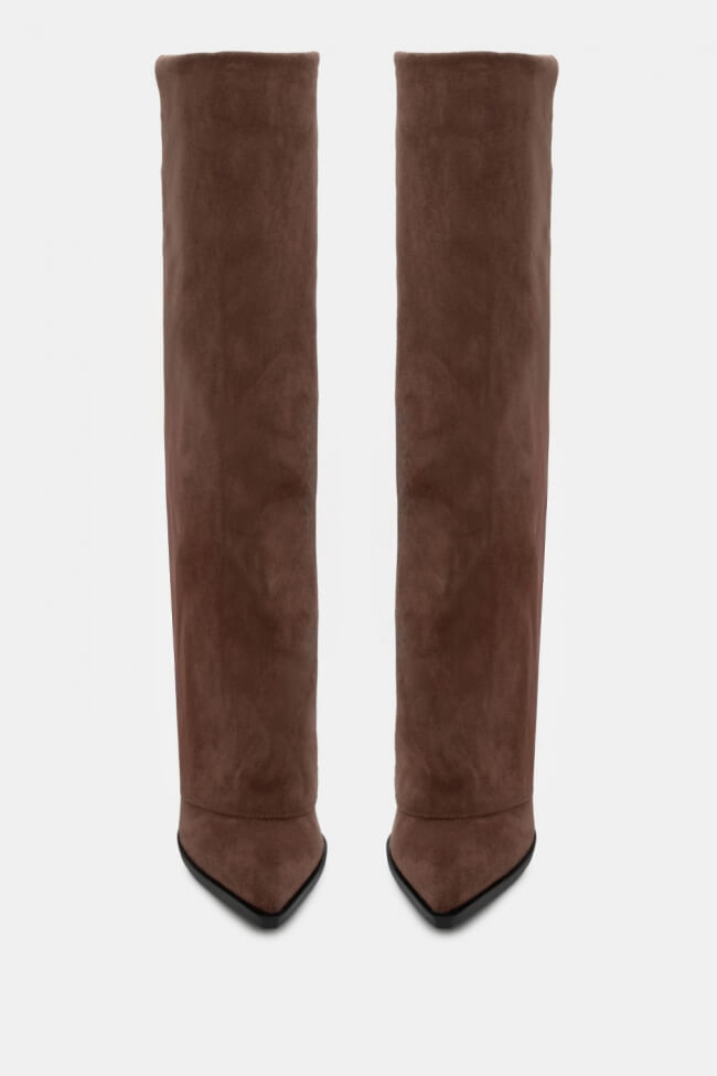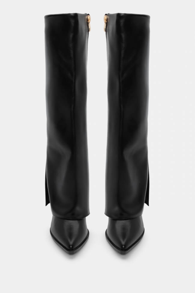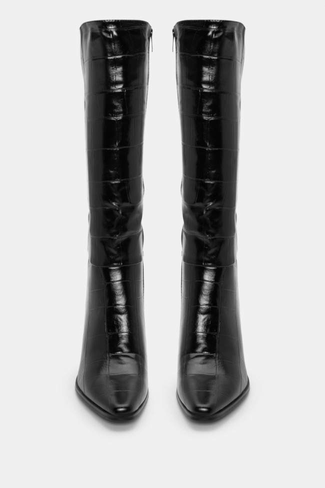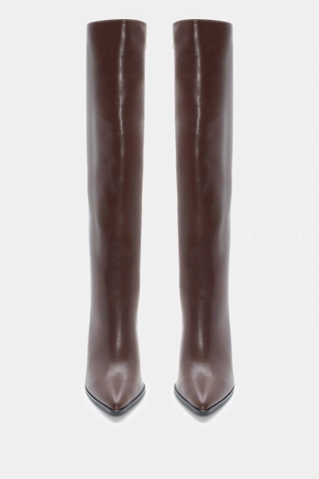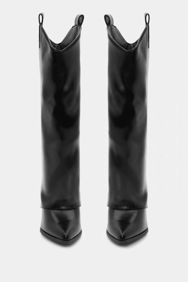 Il must-have assoluto della stagione - gli stivali a punta. Sexy e senza tempo, allungano le gambe e mettono in risalto la tua silhouette.