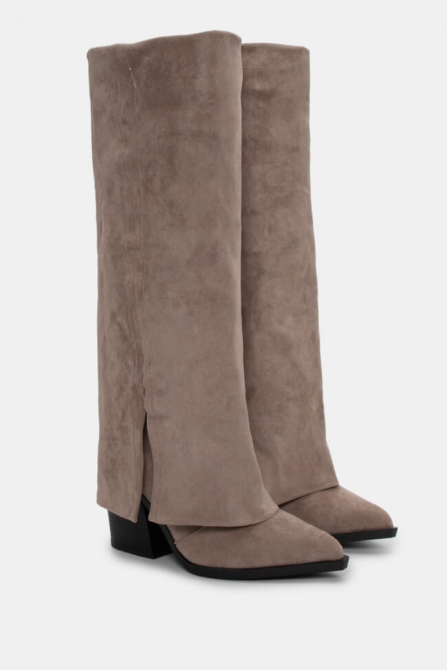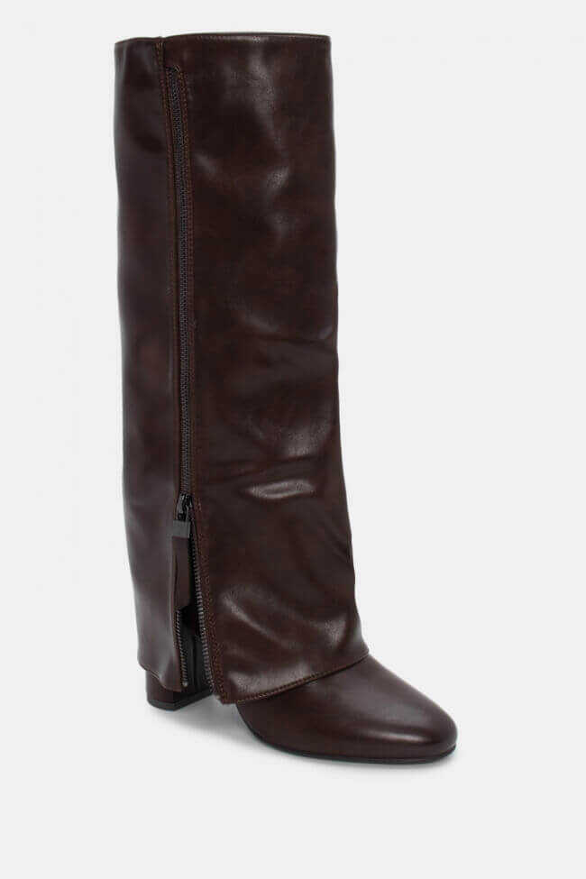 Stivali con Effetto Risvolto & Chiusura Decorativa con Cerniera
