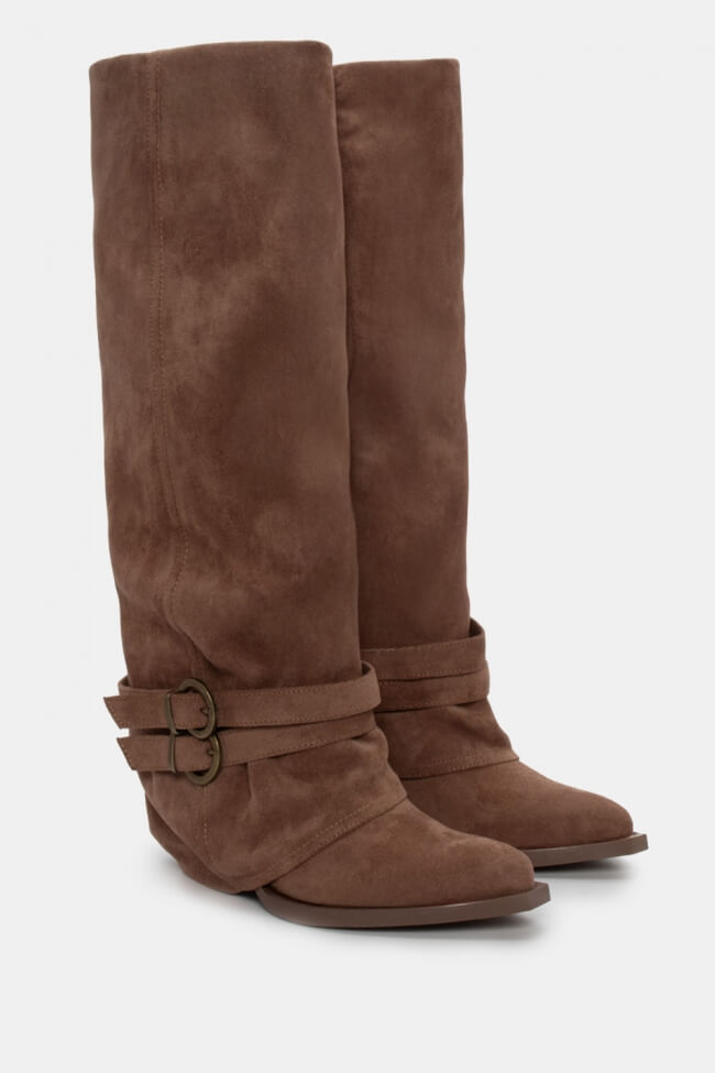 Stivali da Cowboy con Effetto Pieghevole con Doppi Cinturini