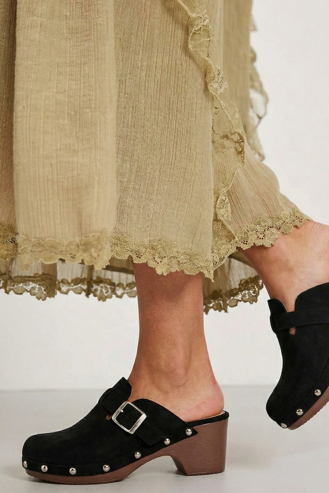 Clogs με Φαρδιά Φάσα & Διακοσμητικό Λουράκι