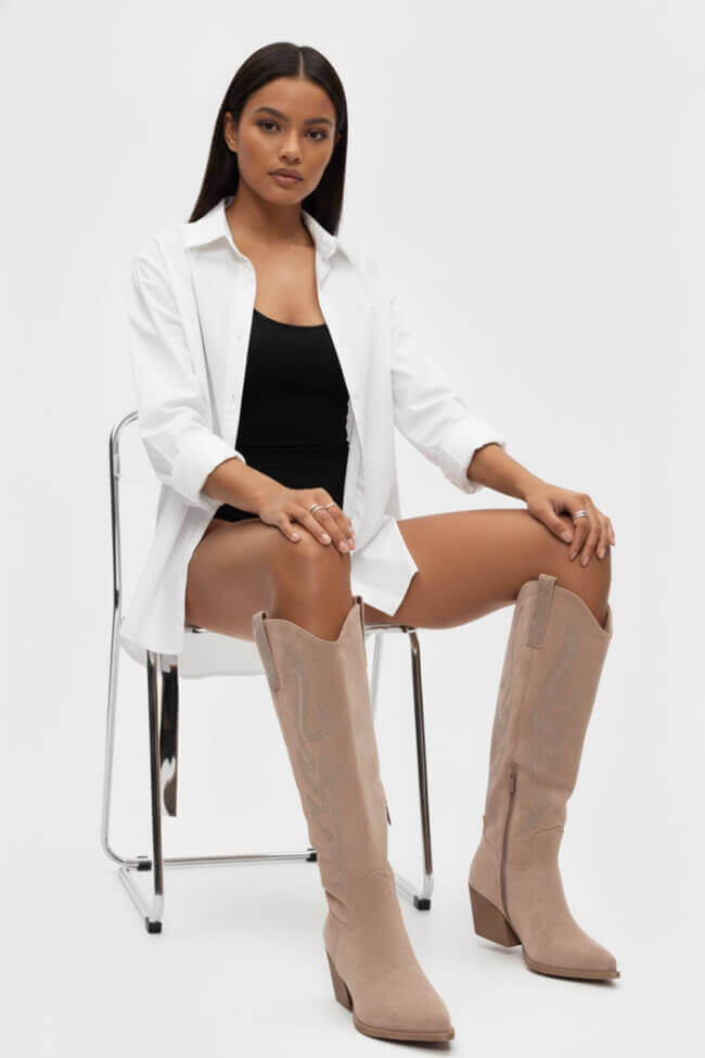 Cowboy Boots with Foldable Shaft Effect & Studs