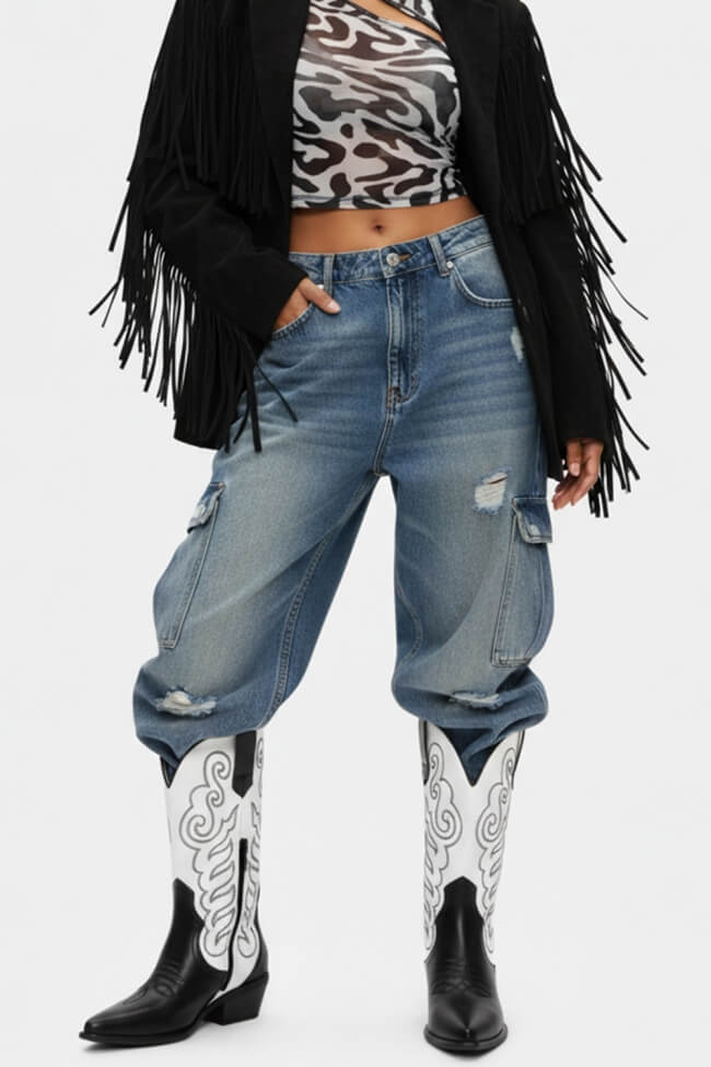 Каубойски Ботинки с Ефект на Сгъваема Лента