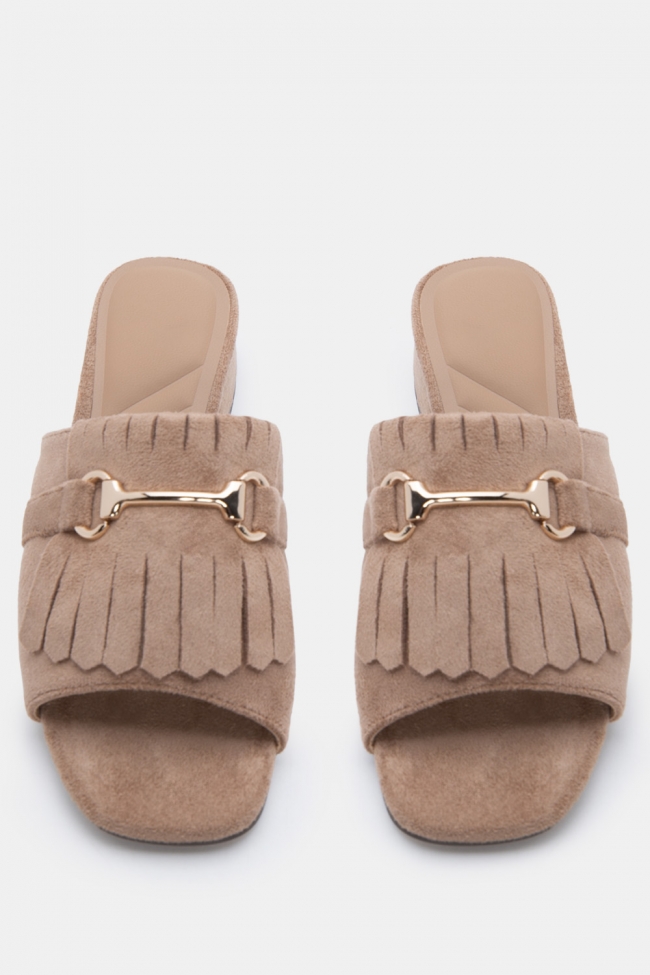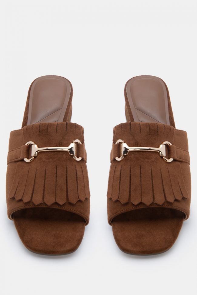 Mules с плетена плитка и декоративна тока
