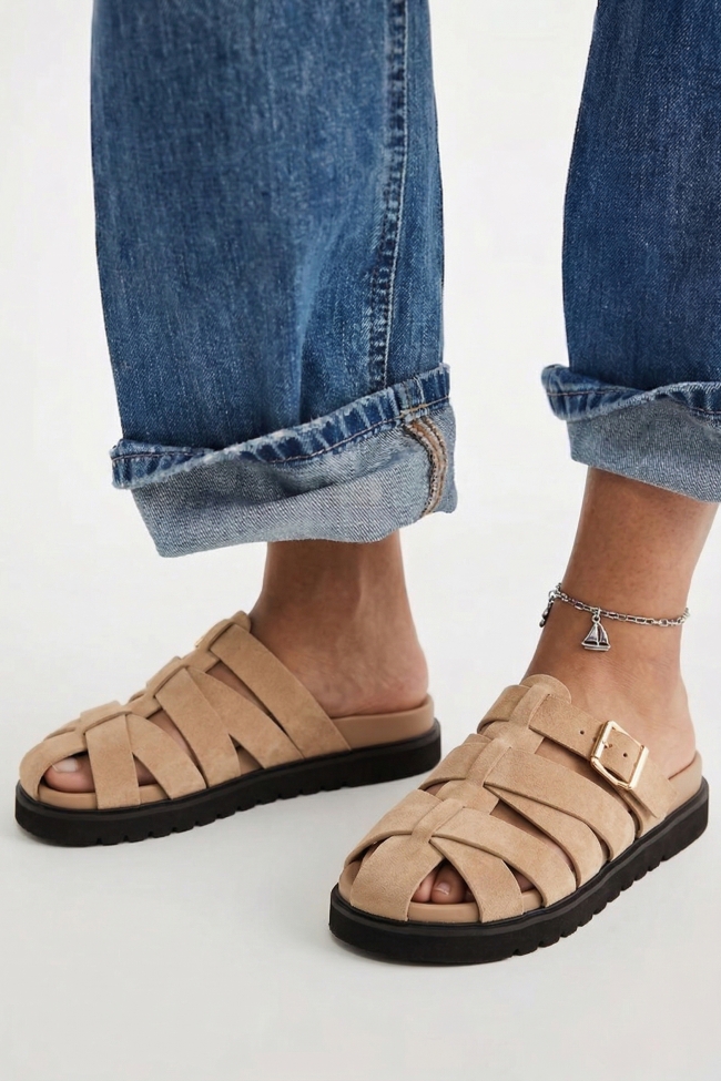 Σανδάλια Flatform με Διπλές Τόκες & Τρούκς