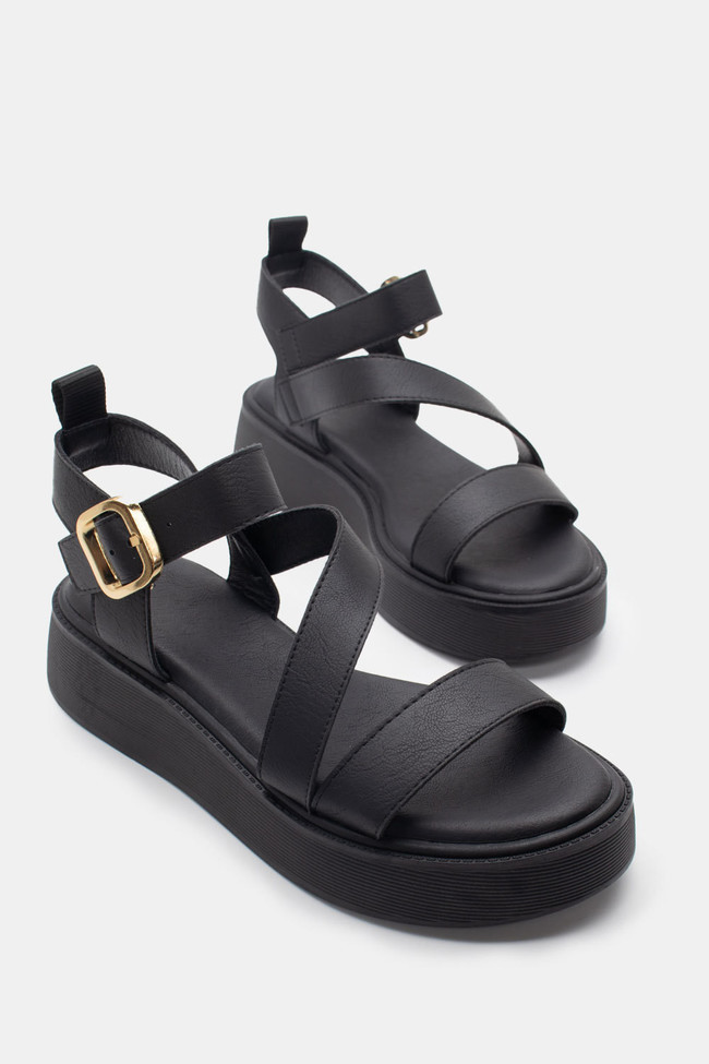 Sandale Flatform cu Catarame Duble