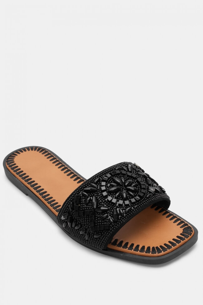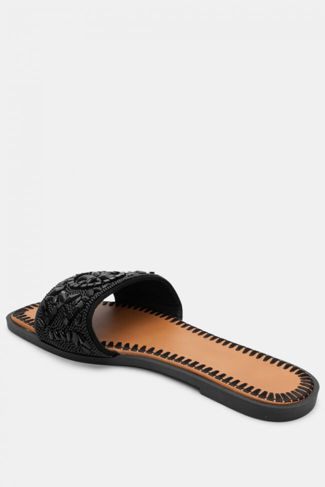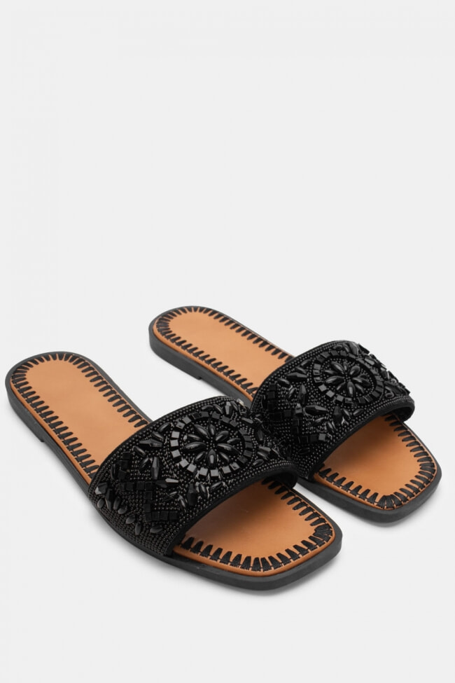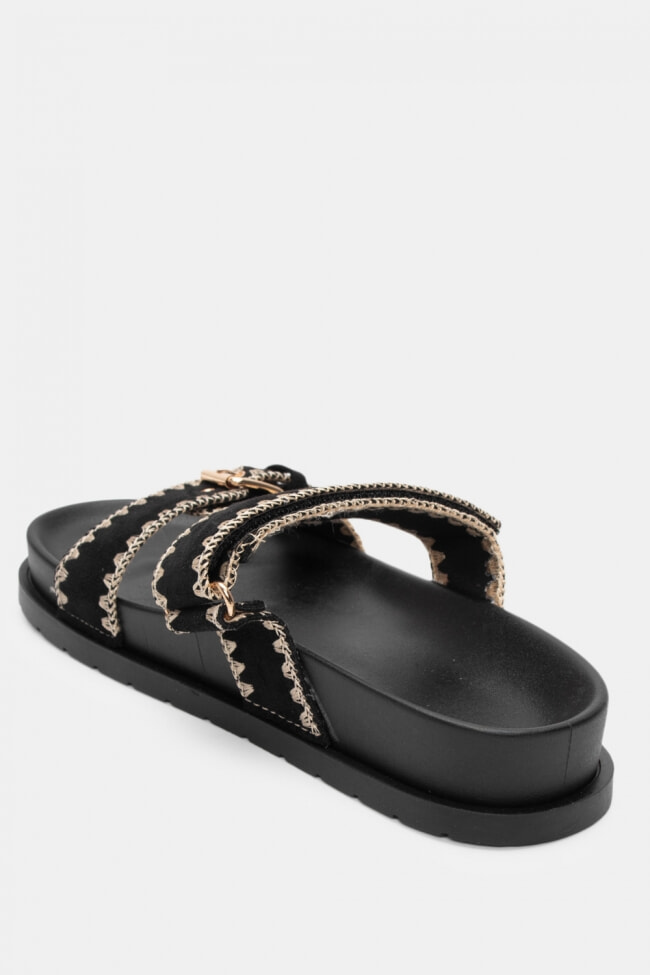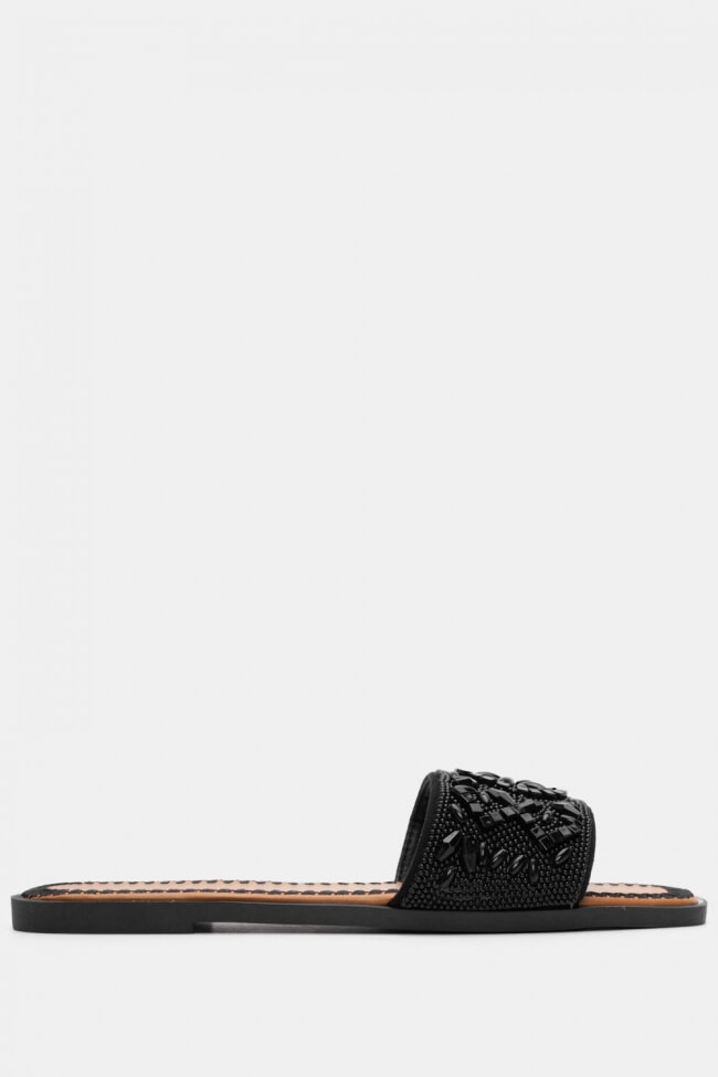 LUIGI DESIGN- Flat Sandals with Diagonal Strap & Strass