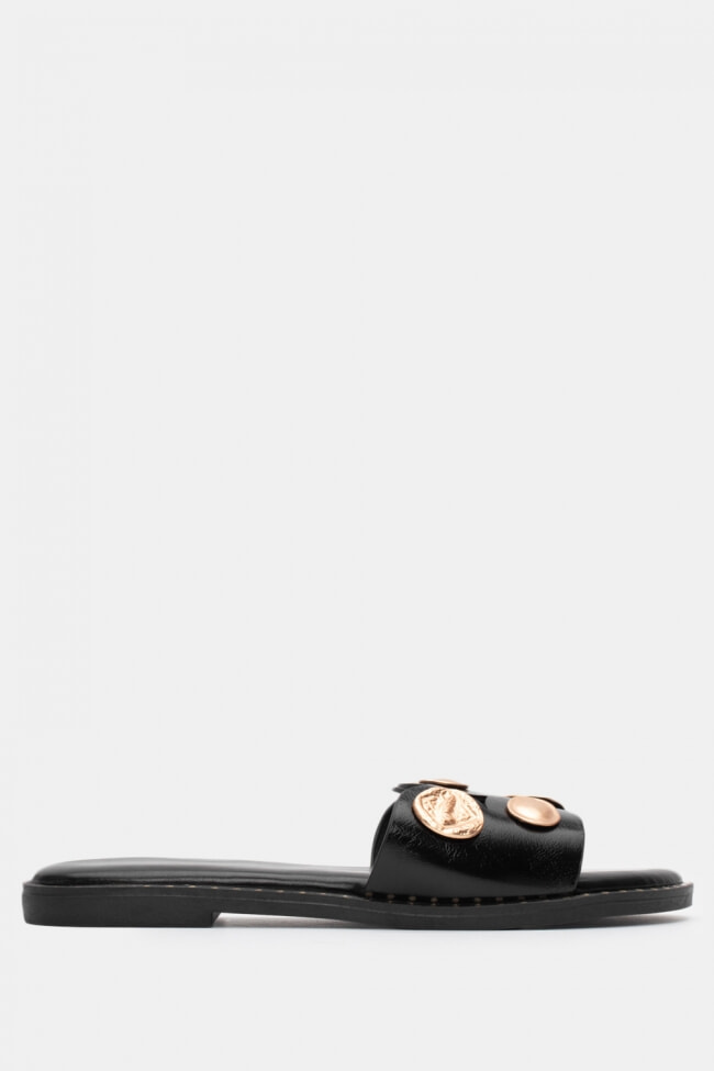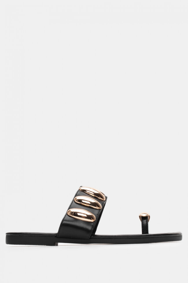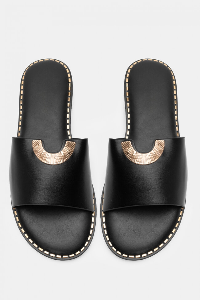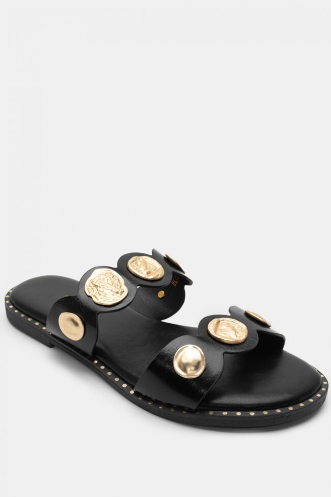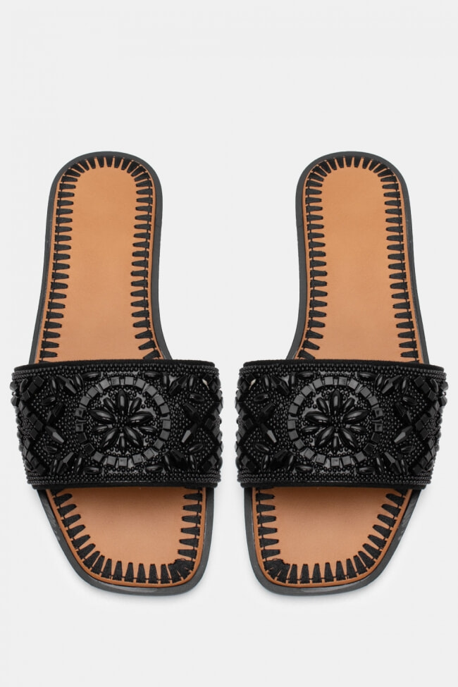 LUIGI DESIGN- Flat Sandals with Diagonal Strap & Strass