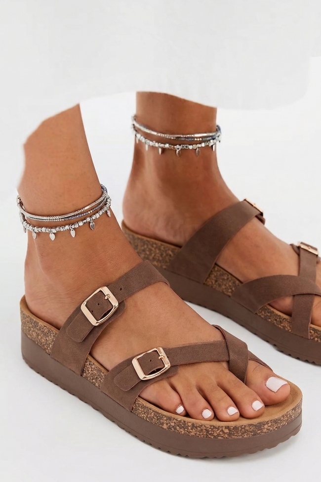 Сандали Flatfrom с Кръстосани Каишки и Каишка на Глезена