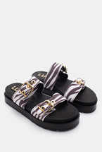 Scoprite il sandalo flat più elegante, ideale per ogni occasione. Si distingue per la moderna doppia fibbia e il suo design confortevole. Regalate alla vostra giornata un tocco di eleganza e fiducia, unendo comfort e stile.