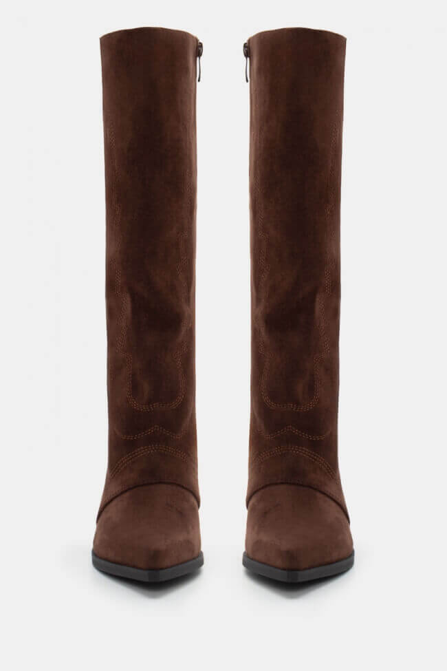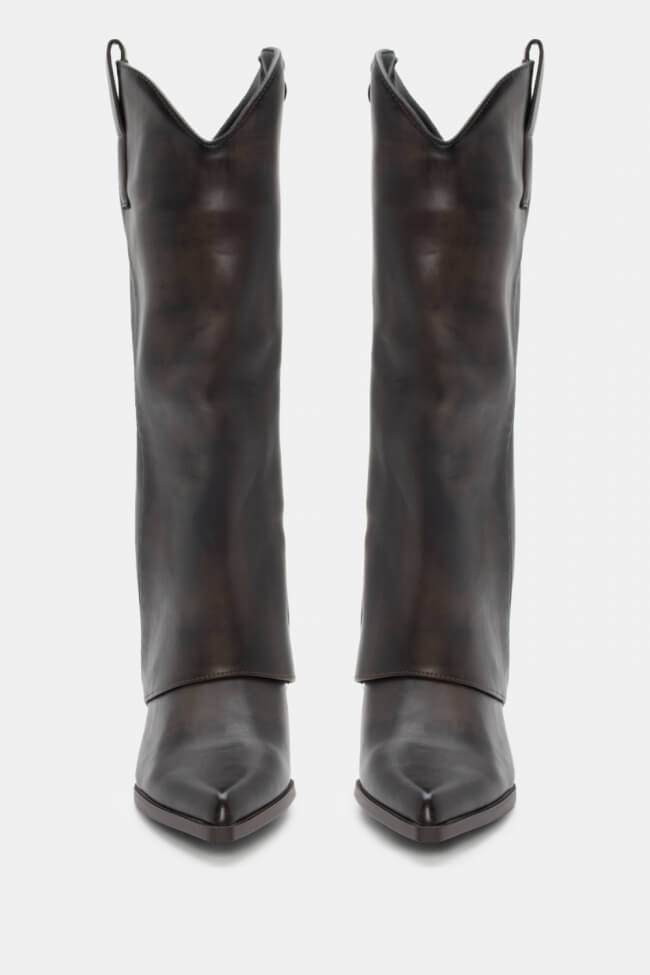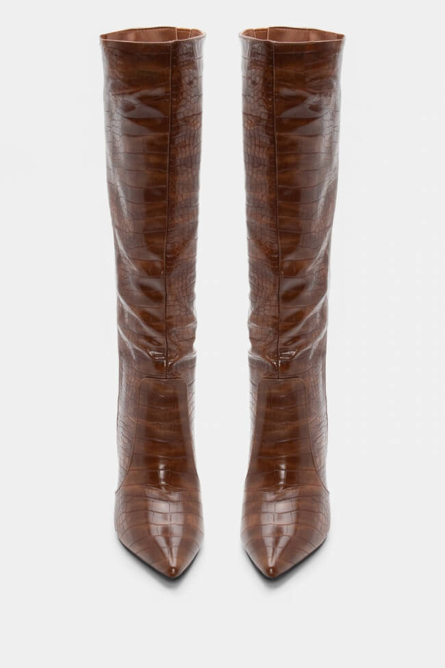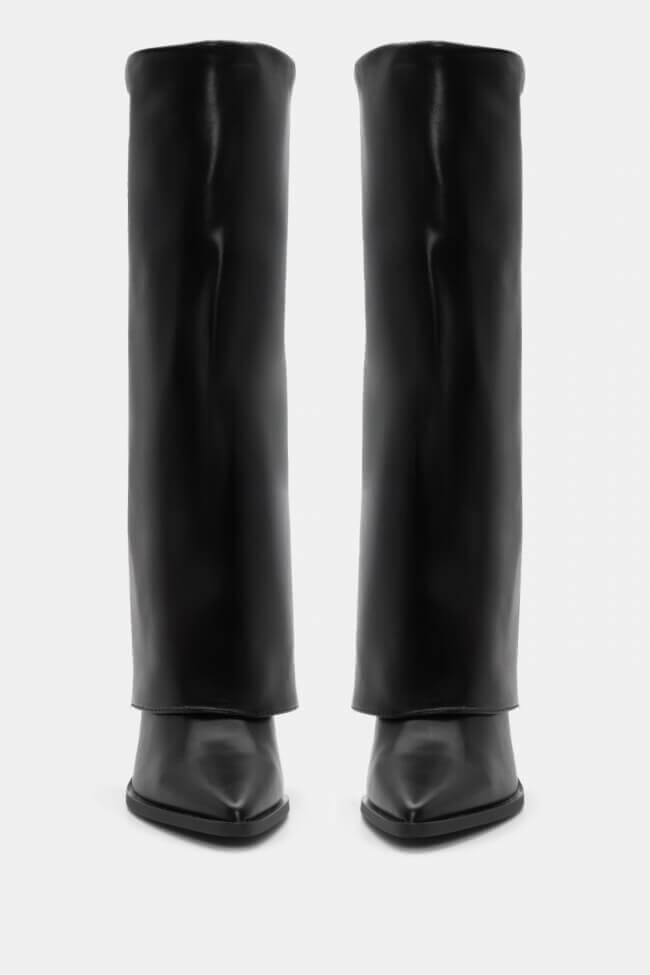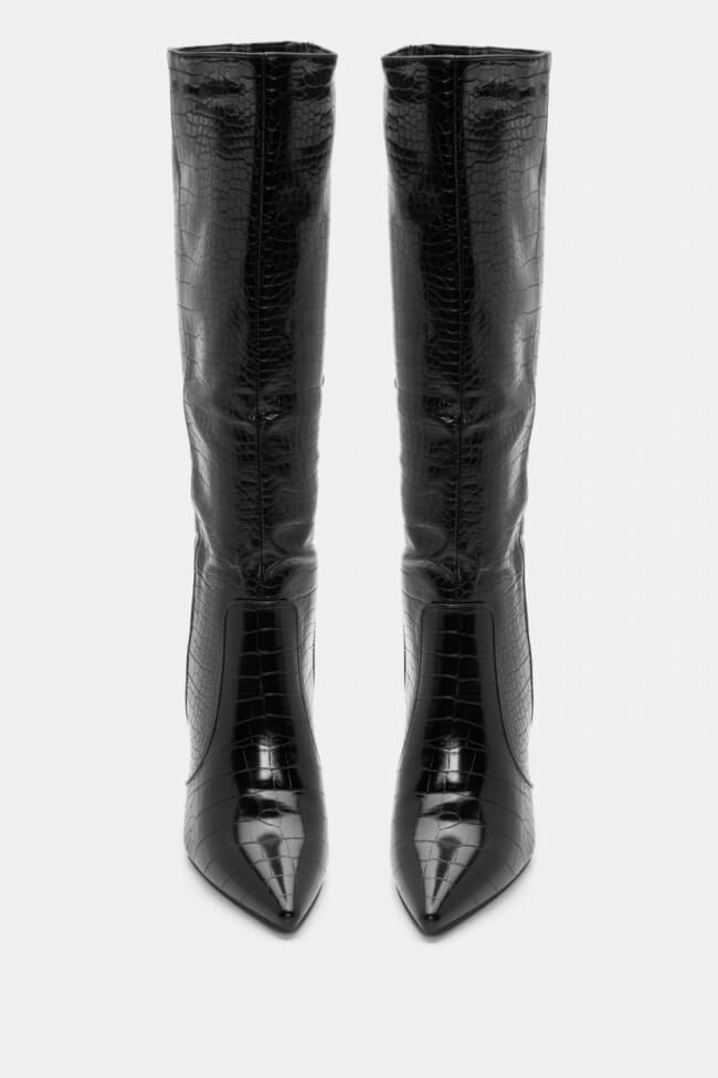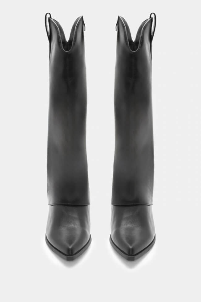 Il must-have assoluto della stagione - gli stivali a punta. Sexy e senza tempo, allungano le gambe e mettono in risalto la tua silhouette.
