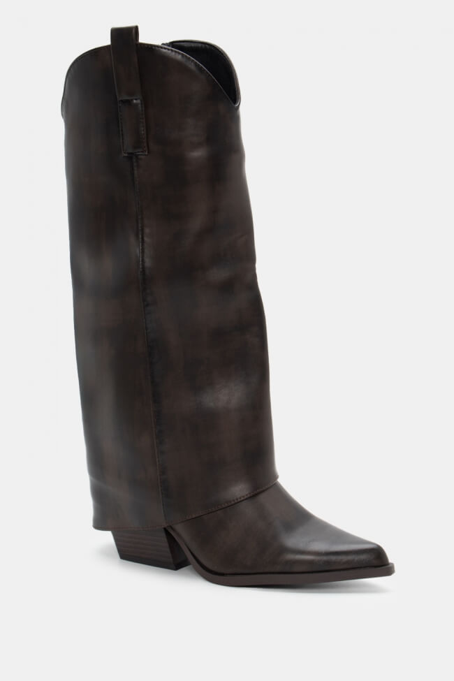 Stivali Cowboy con Effetto Bordi Ripiegabili & Cinturini