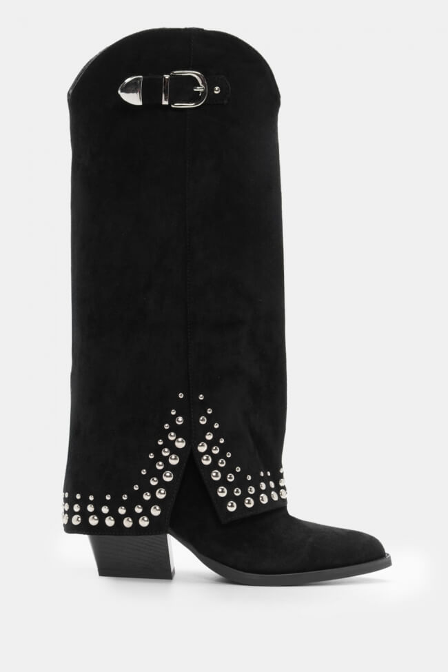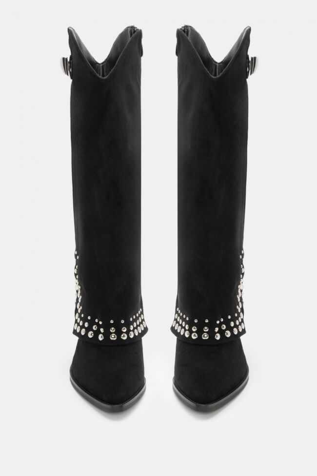 Stivali Cowboy con Effetto Risvolto & Borchie Decorative