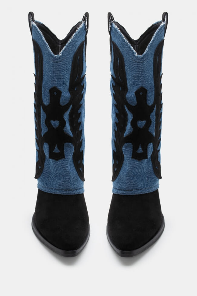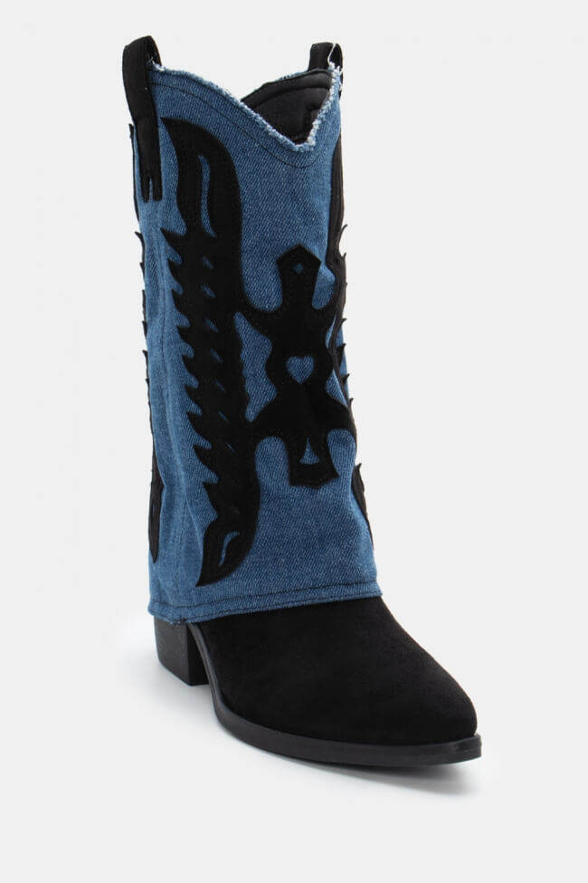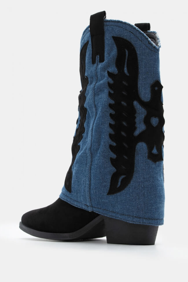 Stivali Cowboy con Effetto Risvolto & Ricamo