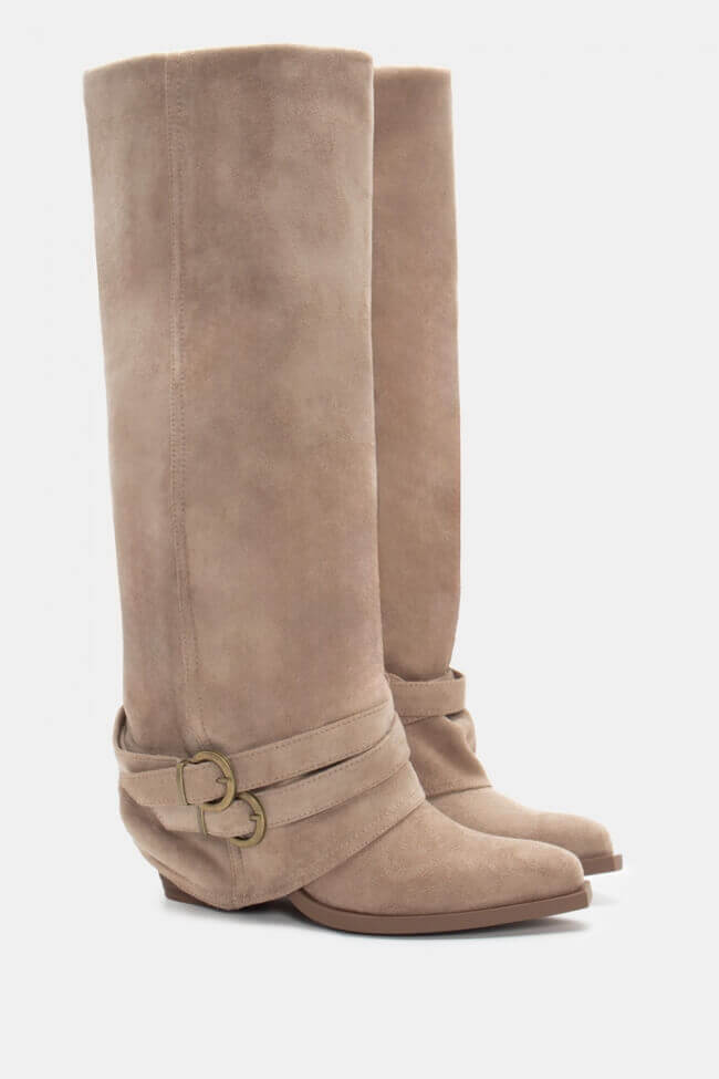 Stivali con Effetto Risvolto & Cinturino Decorativo