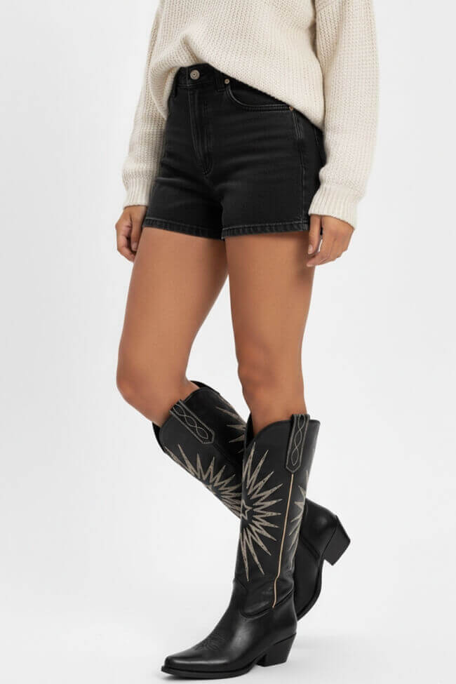 Stivali da Cowboy con Effetto Risvoltabile e Ricamo
