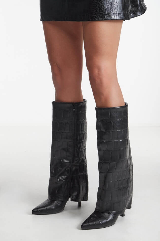 Se desideri qualcosa di super comodo e glamour, sei nel posto giusto. Se non sei amante del classico, prova stivali femminili con tacco grosso e texture coccodrillo per un tocco più giocoso.