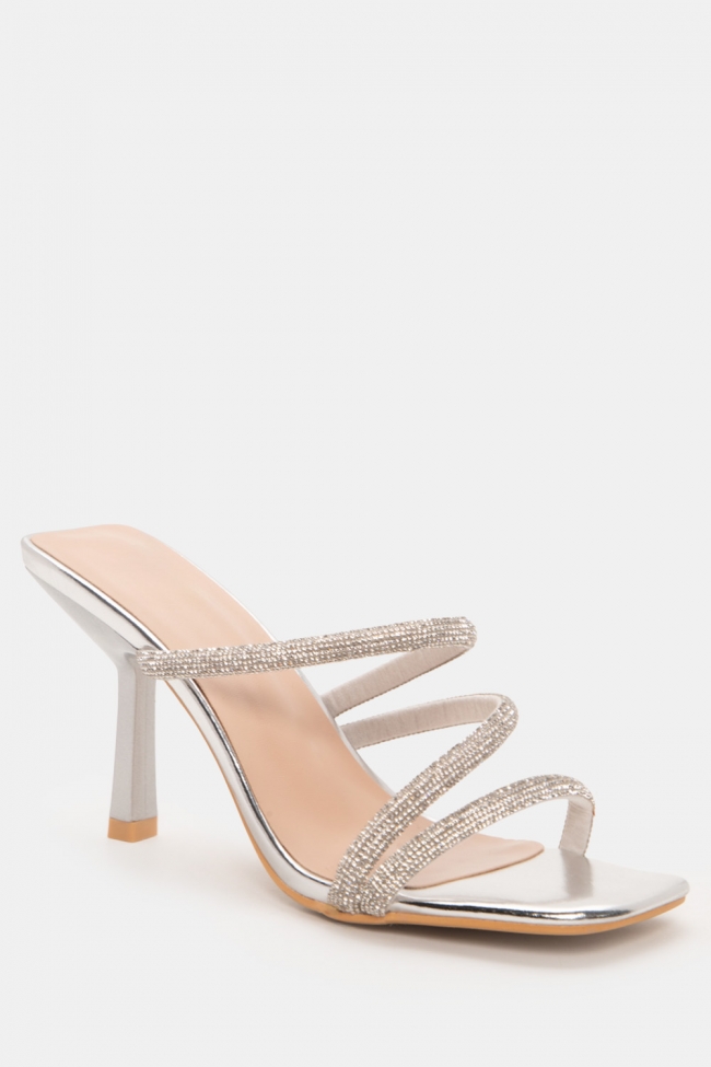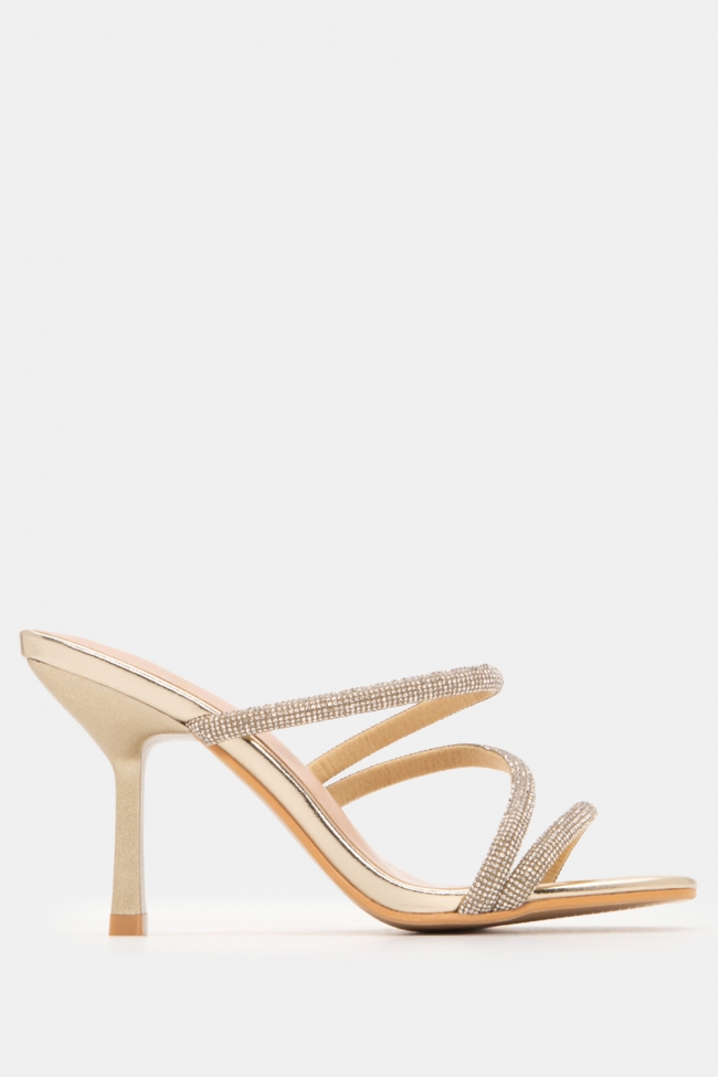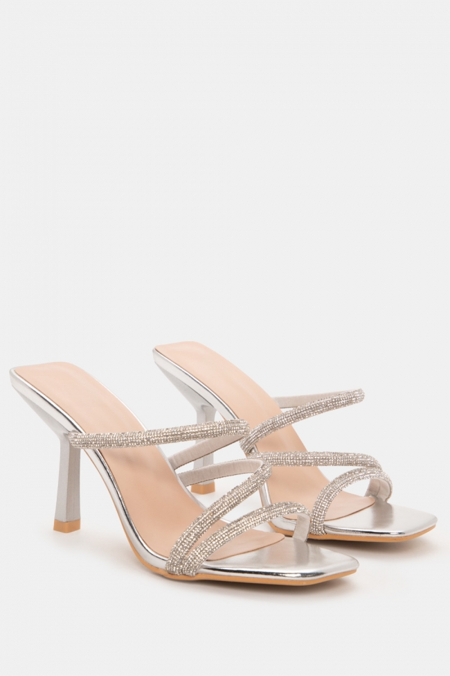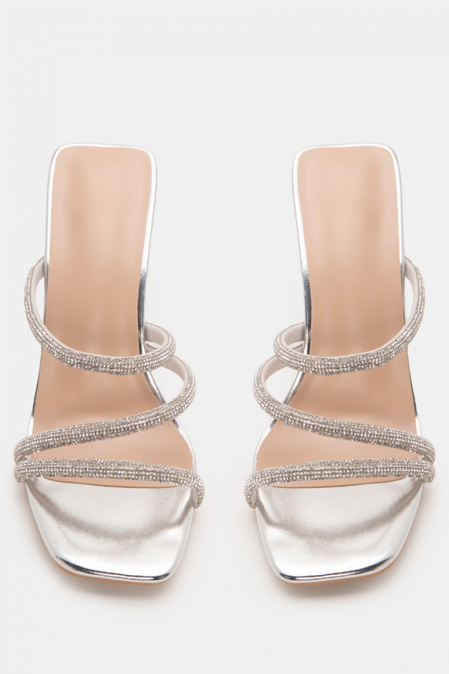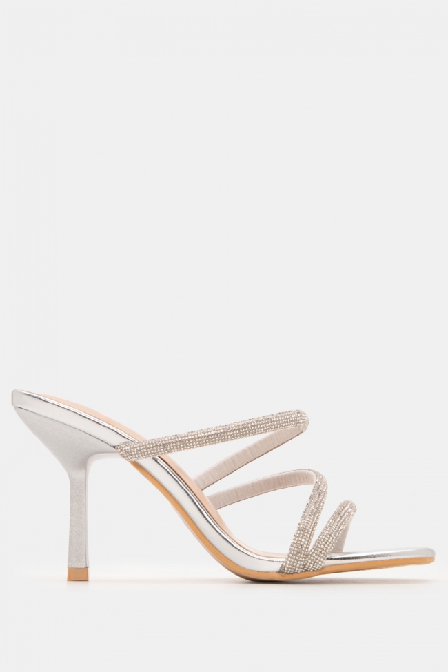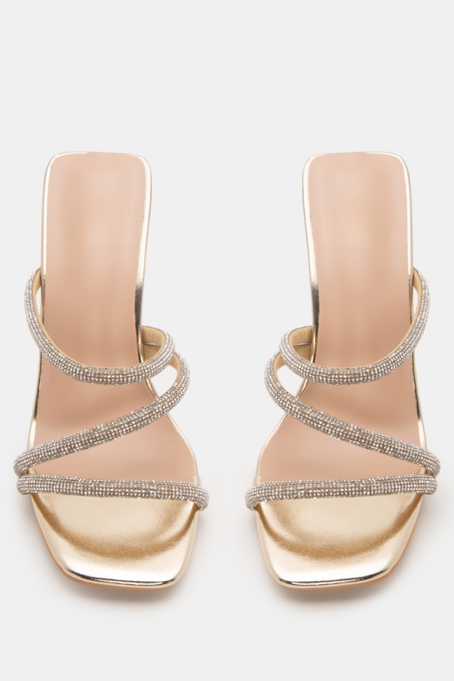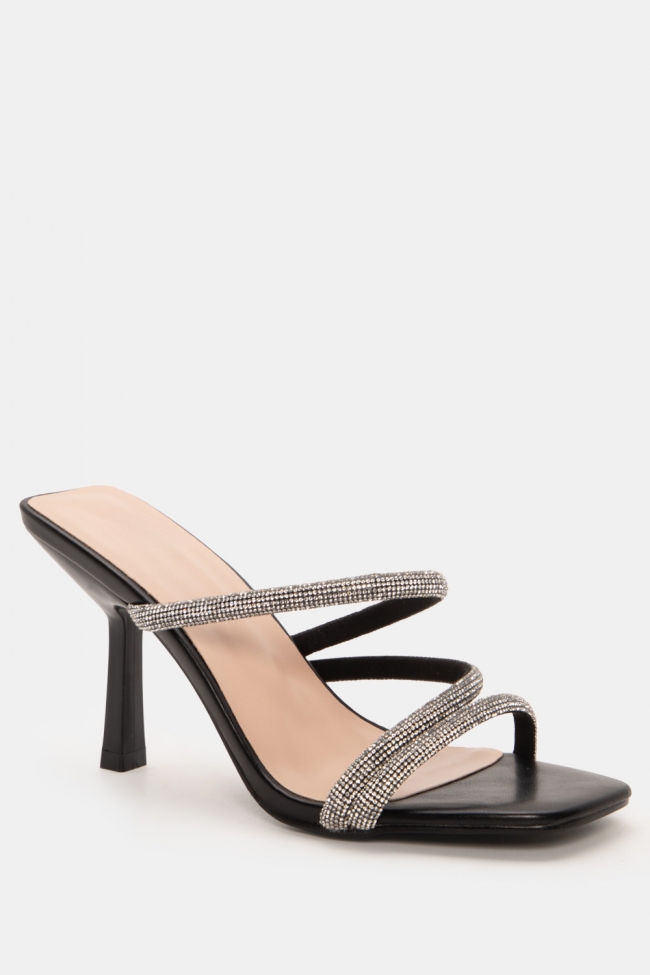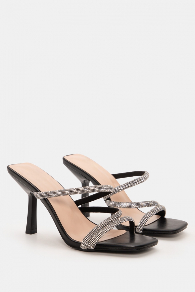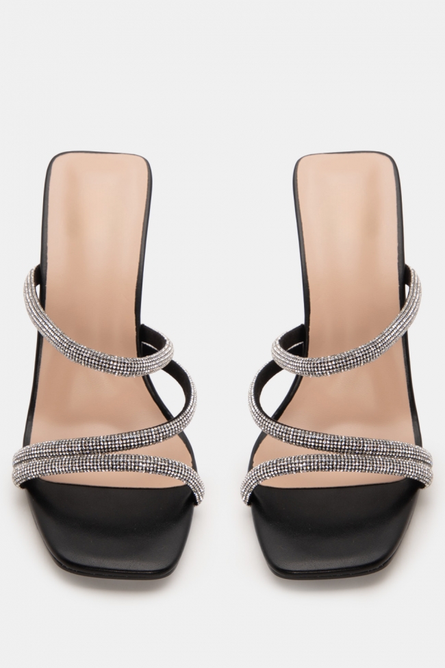 Mules с диагонални каишки от стразове