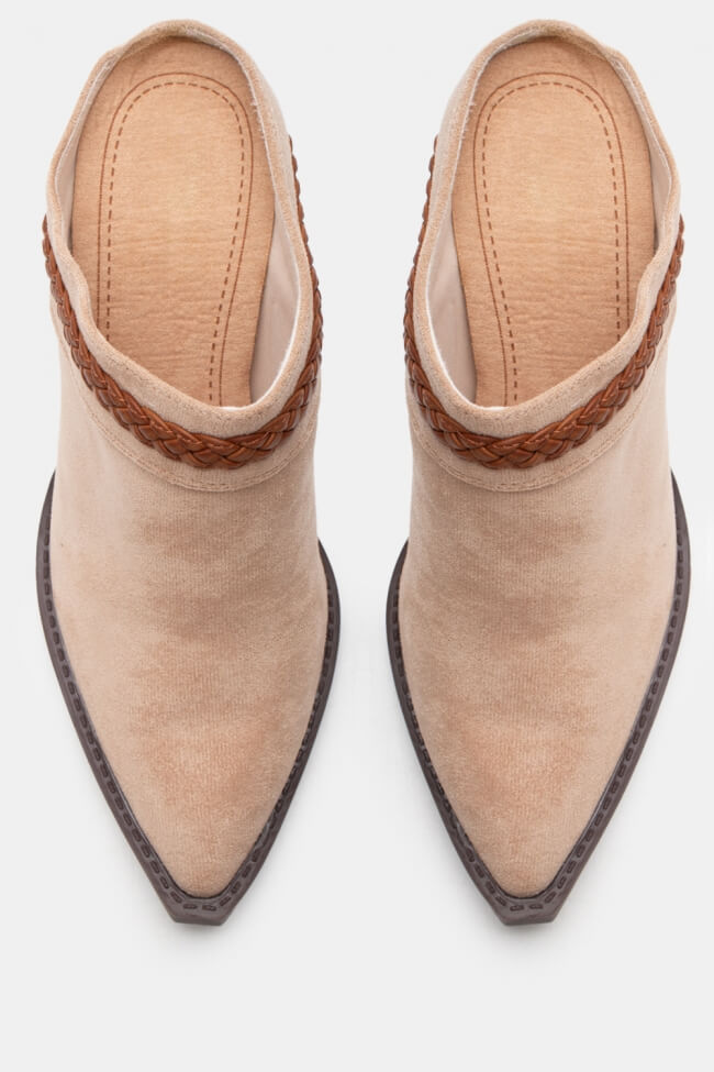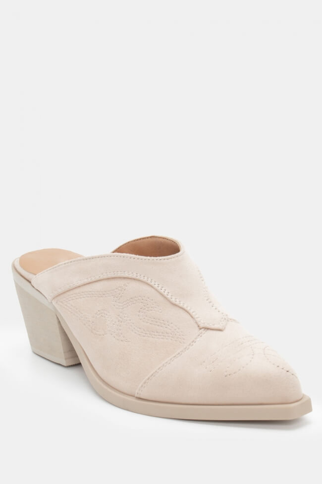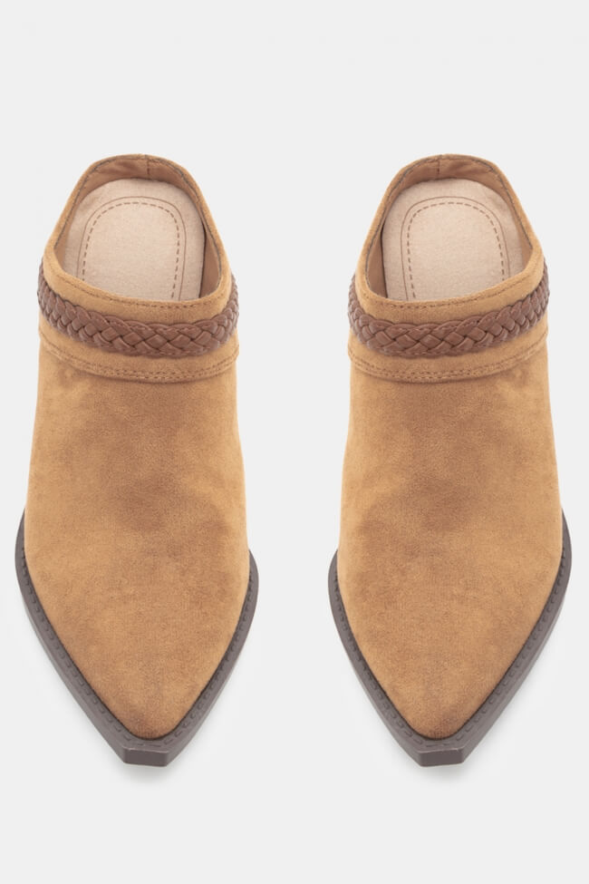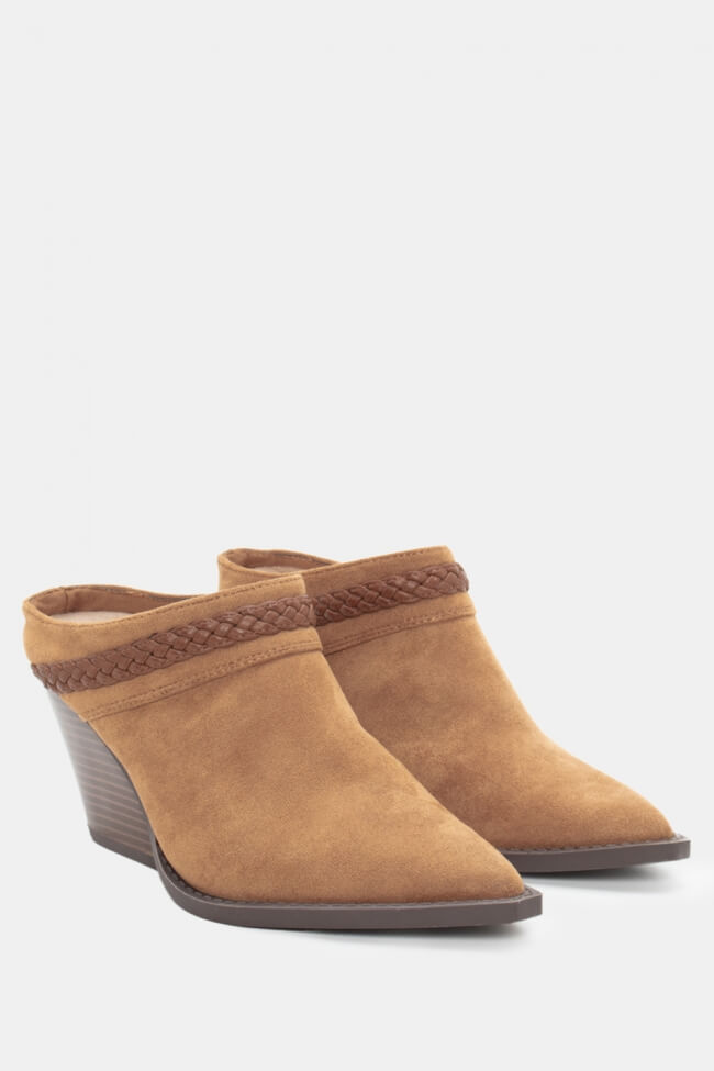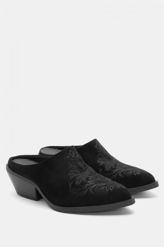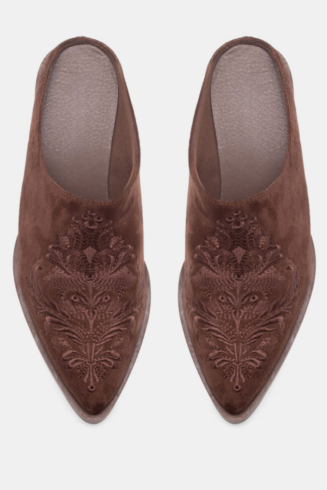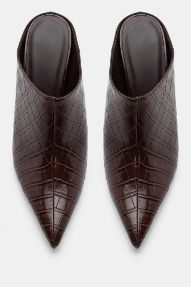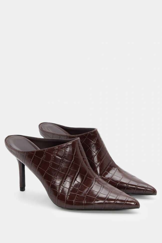 - Пробвай затворени mules или peep-toe от велур или кожа: Държат крака ти топли, докато остават стилни.