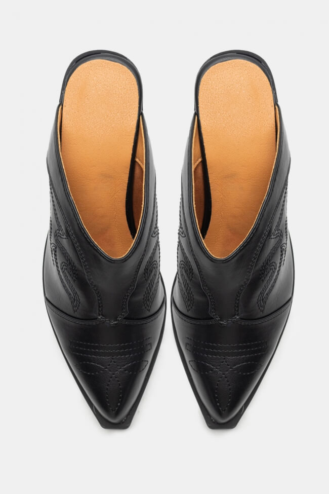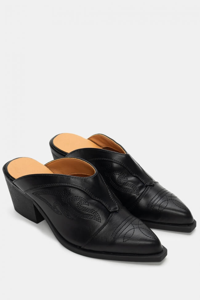 - Избери високи mules сатен или кожени със strappy детайли за sleek & женствен резултат.