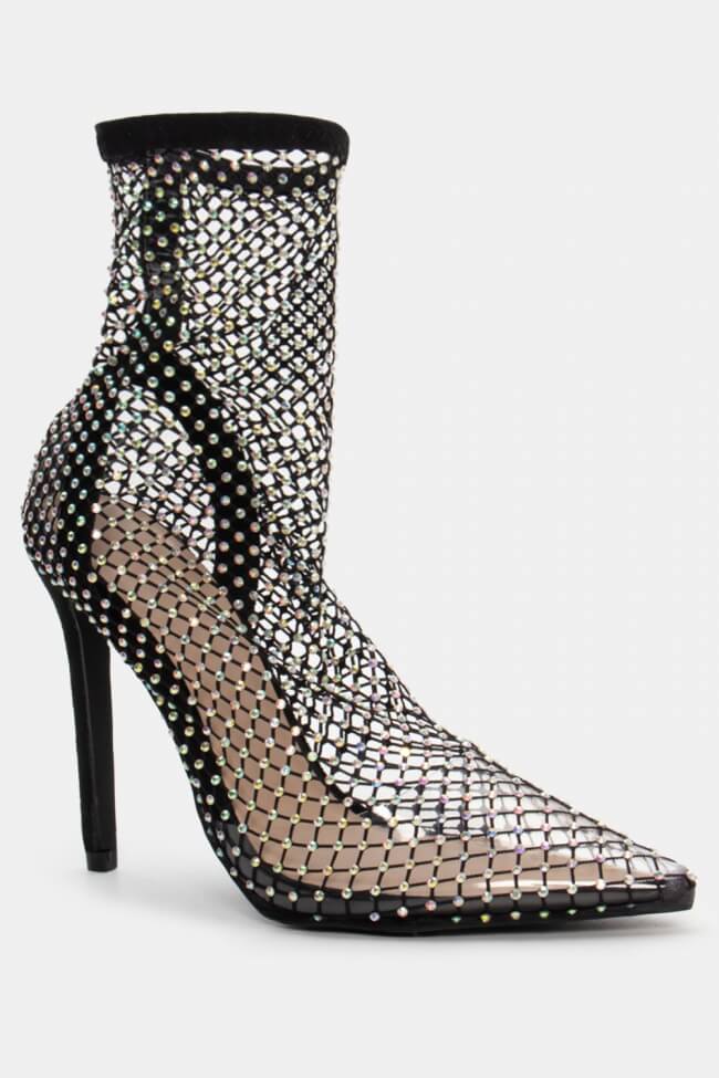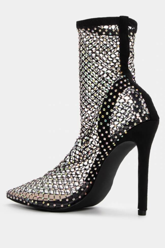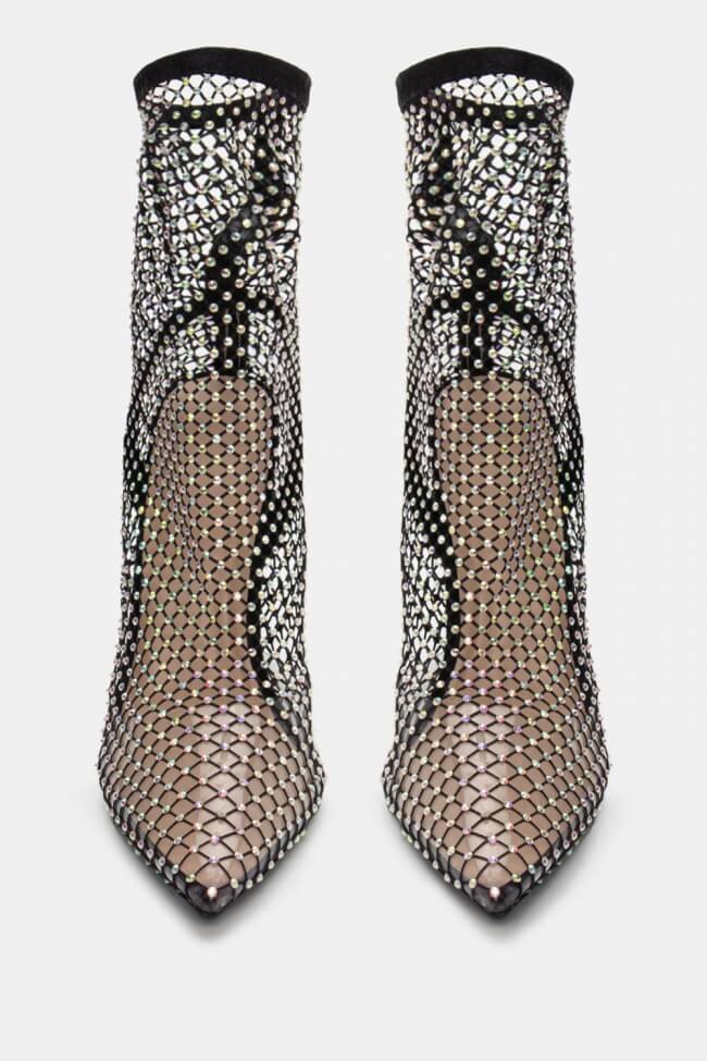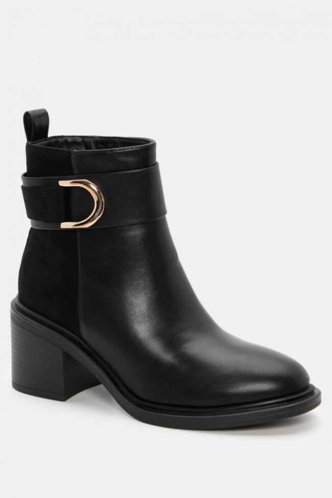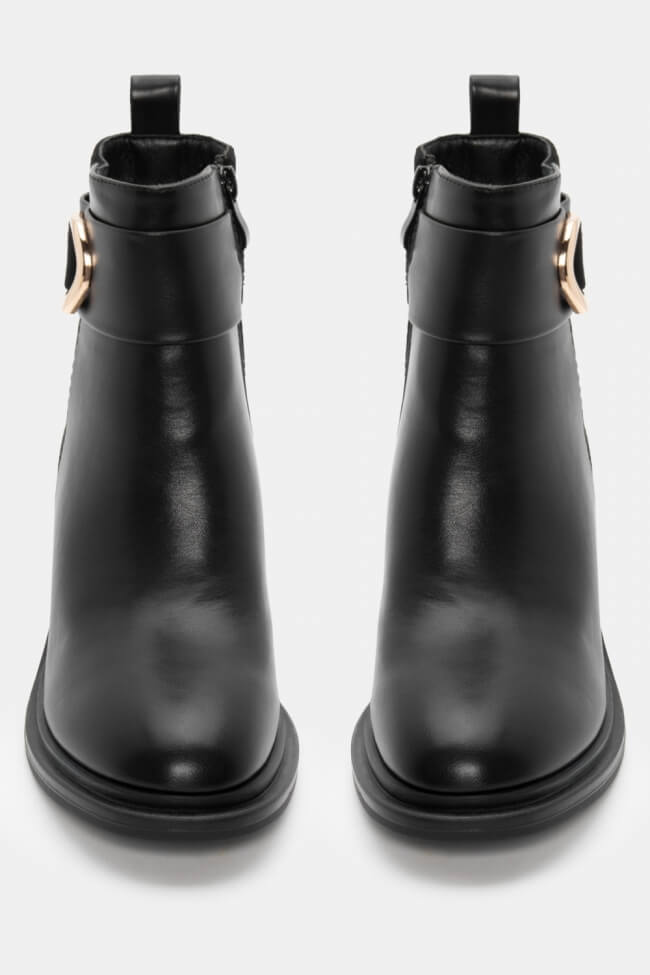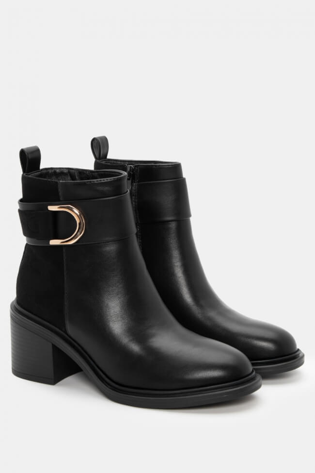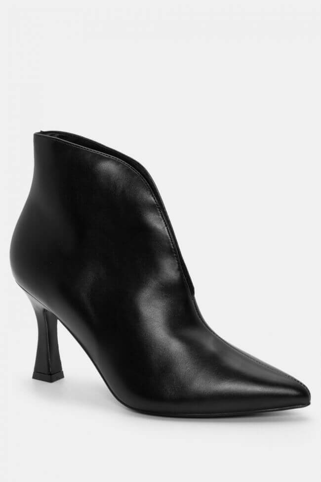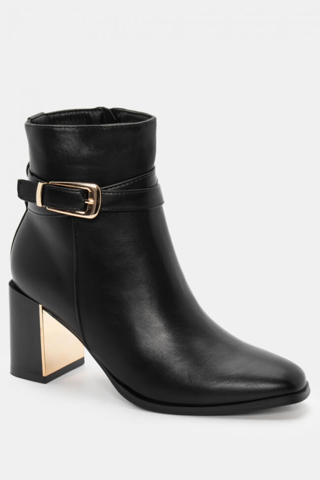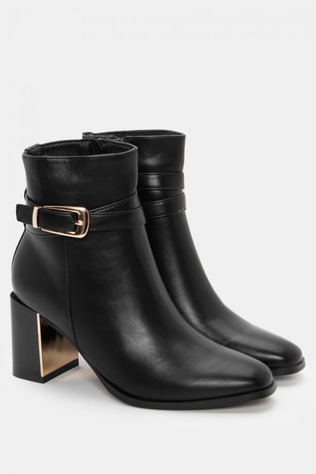 Pointed Ankle Boots with Metallic Detail on the Heel