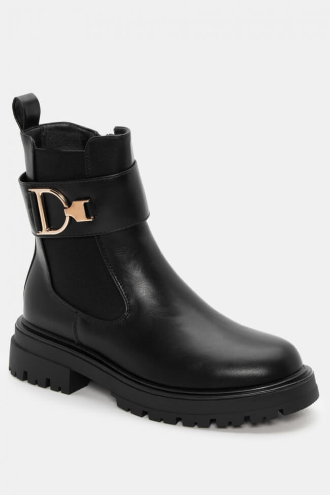 Boots with Fold-Over Flap Effect & Decorative Strap