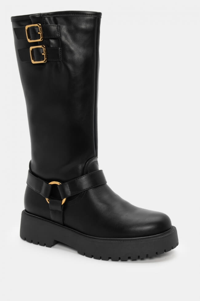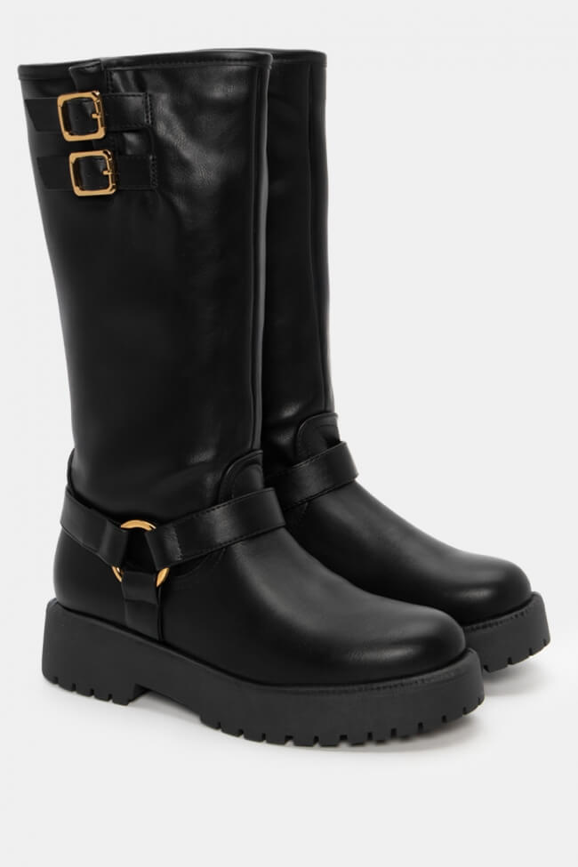 Boots with Fold-Over Effect Cuff & Decorative Straps