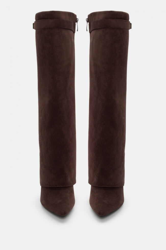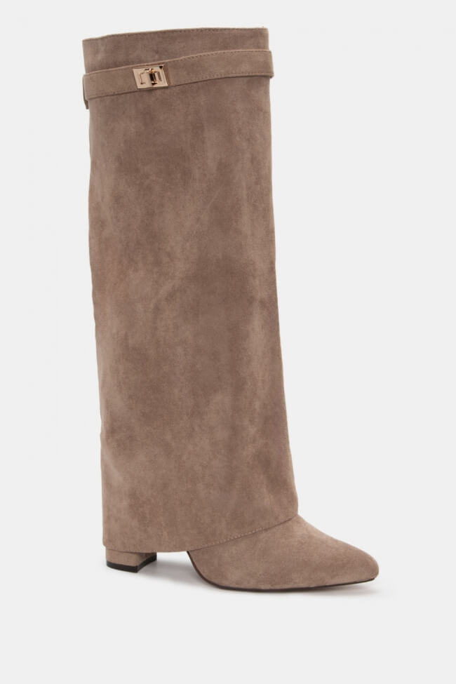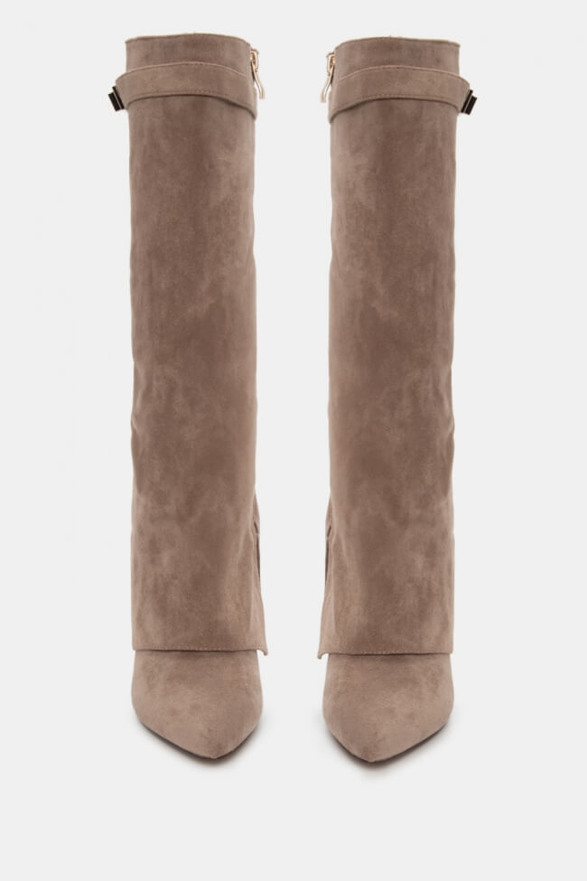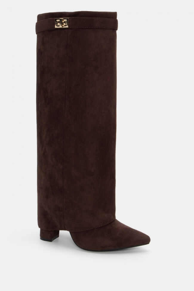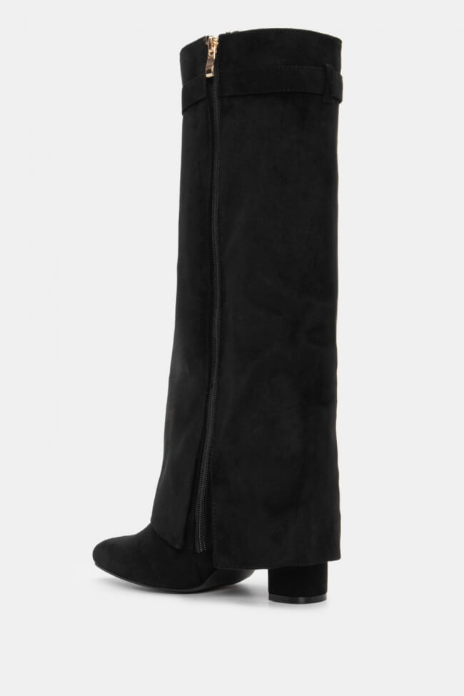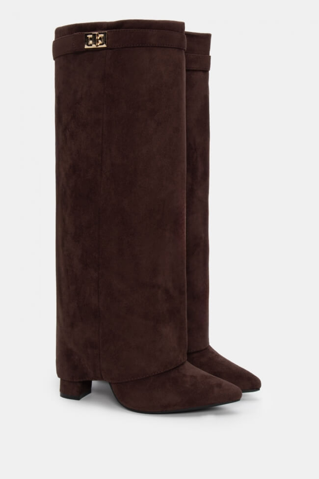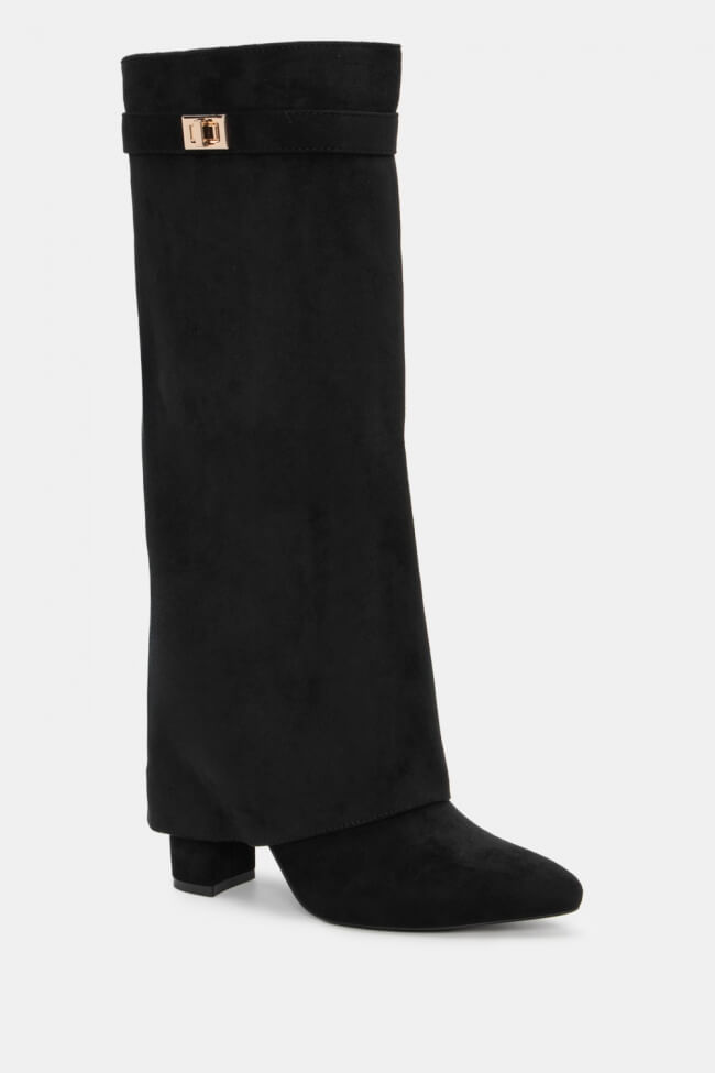 Pointed-Toe Boots with Folded Cuff Effect & Buckles