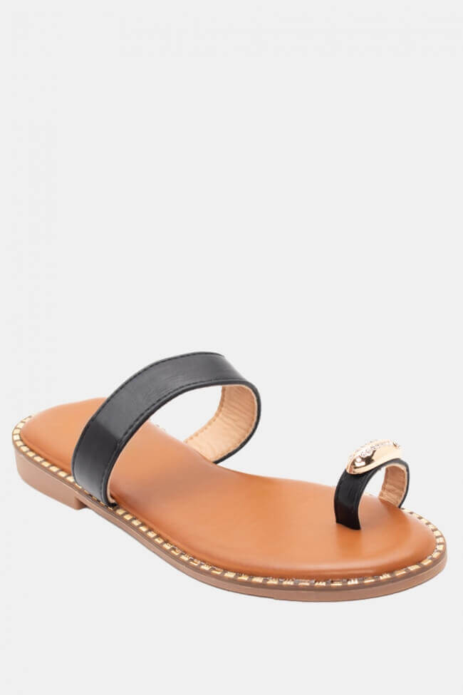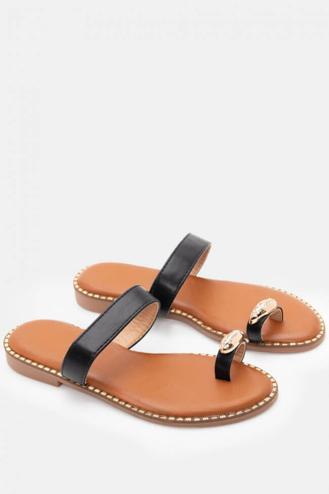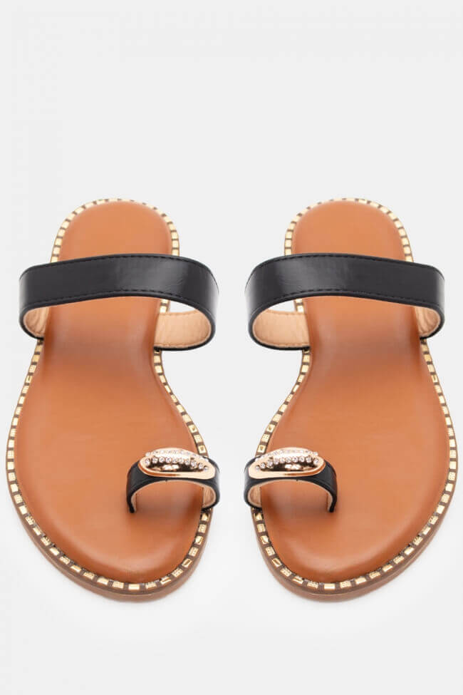 Flat Sandals with Decorative apo Strass
