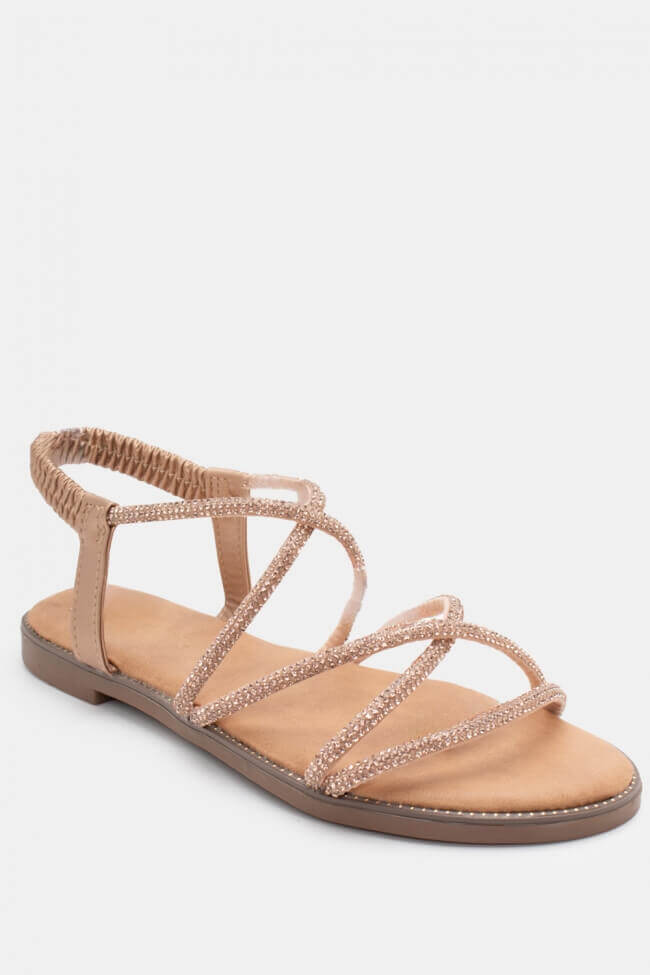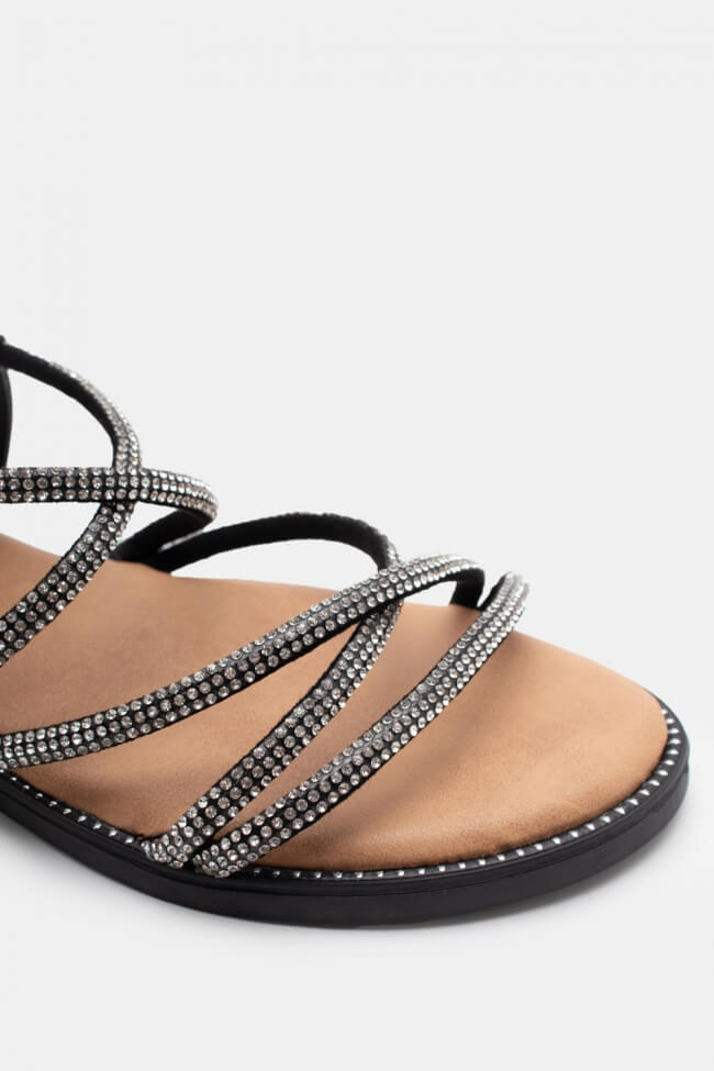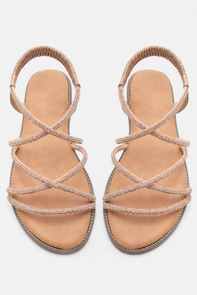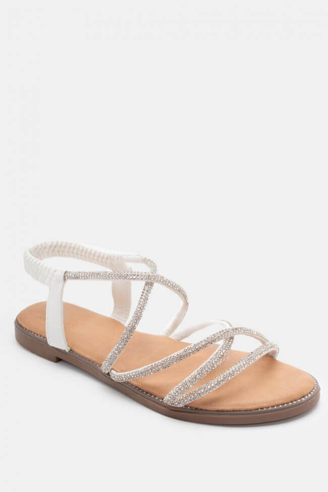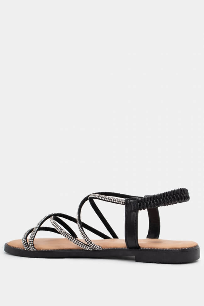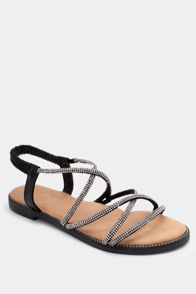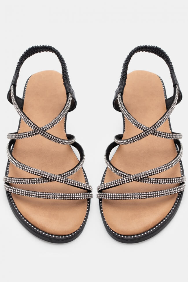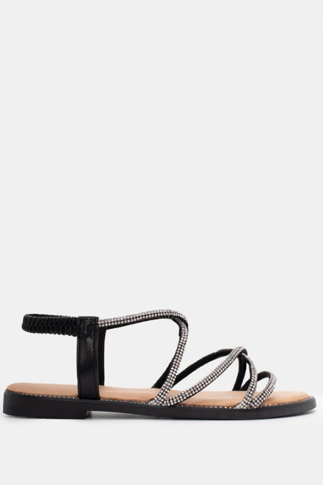 Flat Sandals with Elastic & Strass
