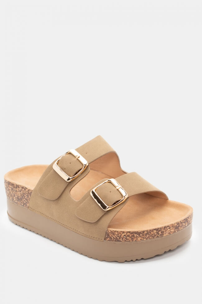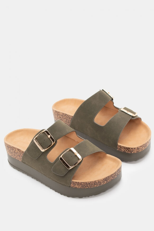 Flatform Sandals with Double Buckles