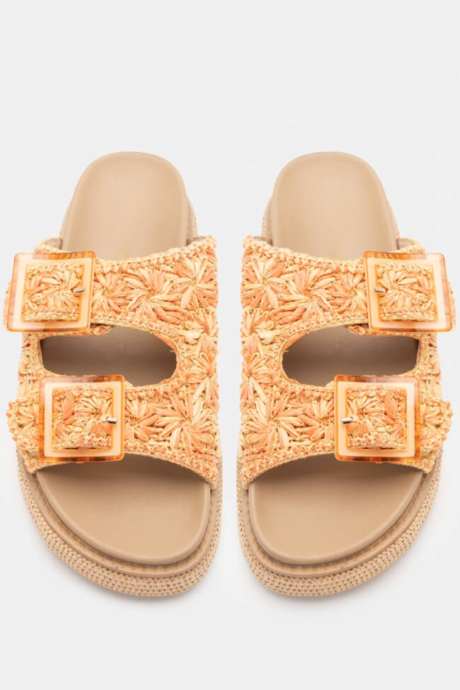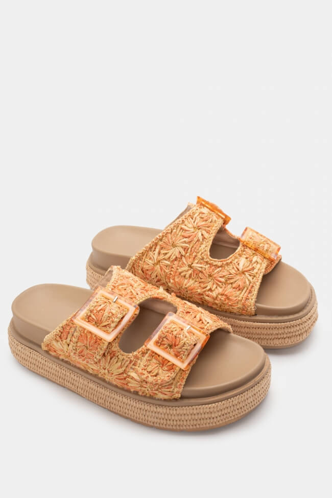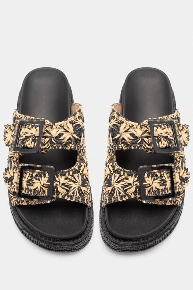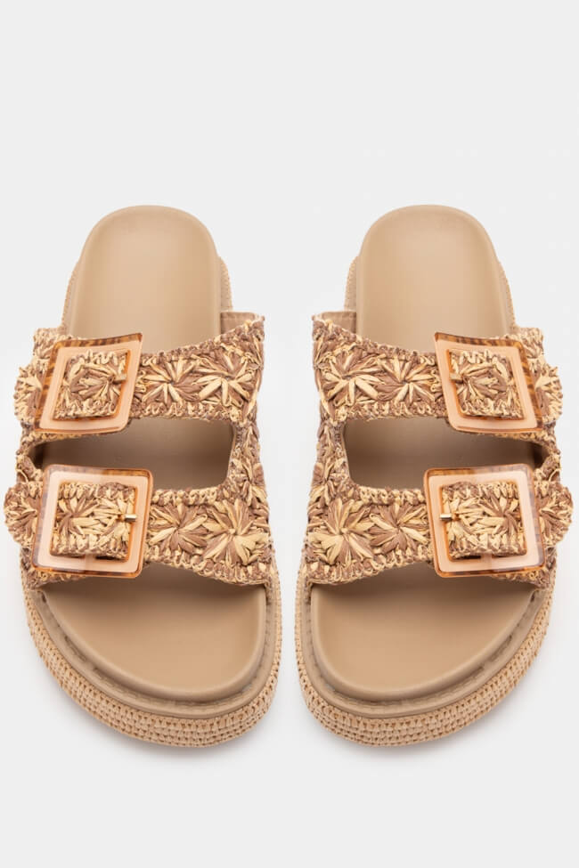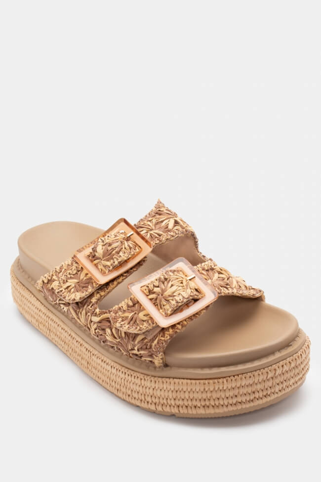 Flatform Sandals with Straw Straps