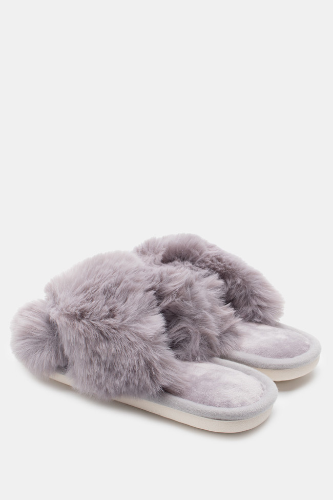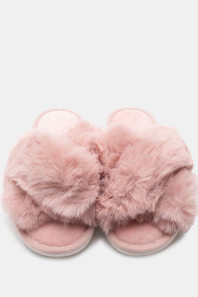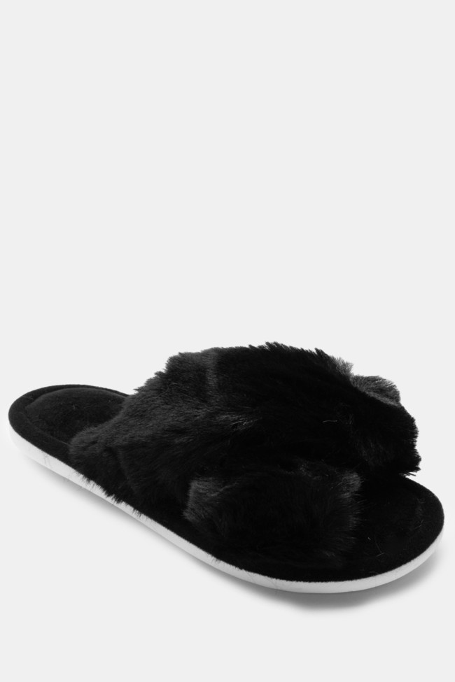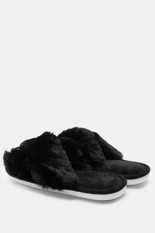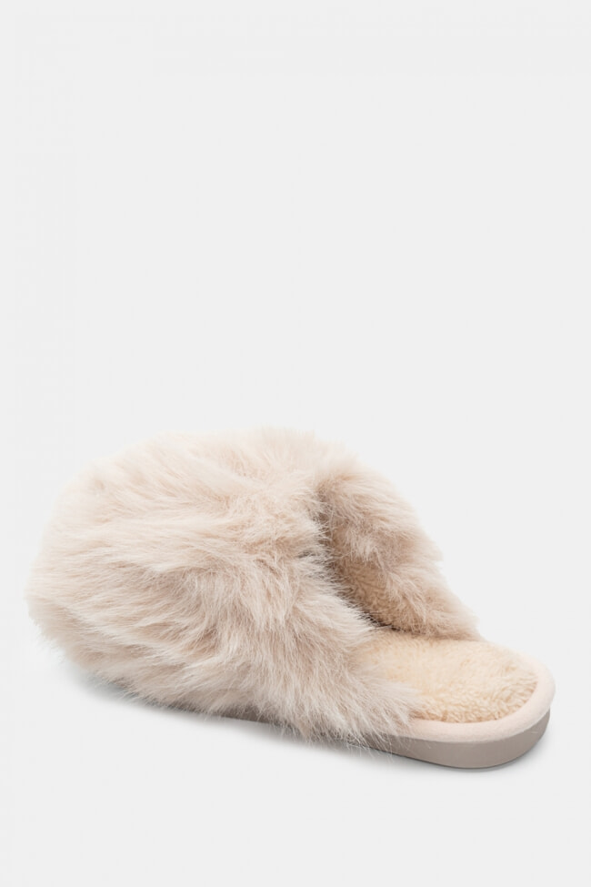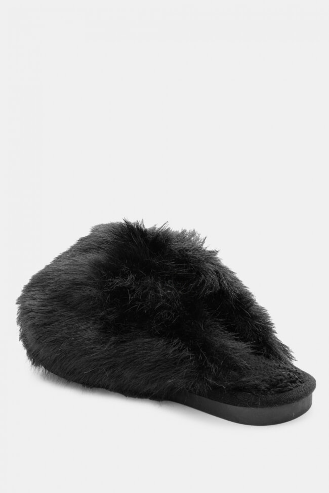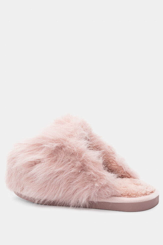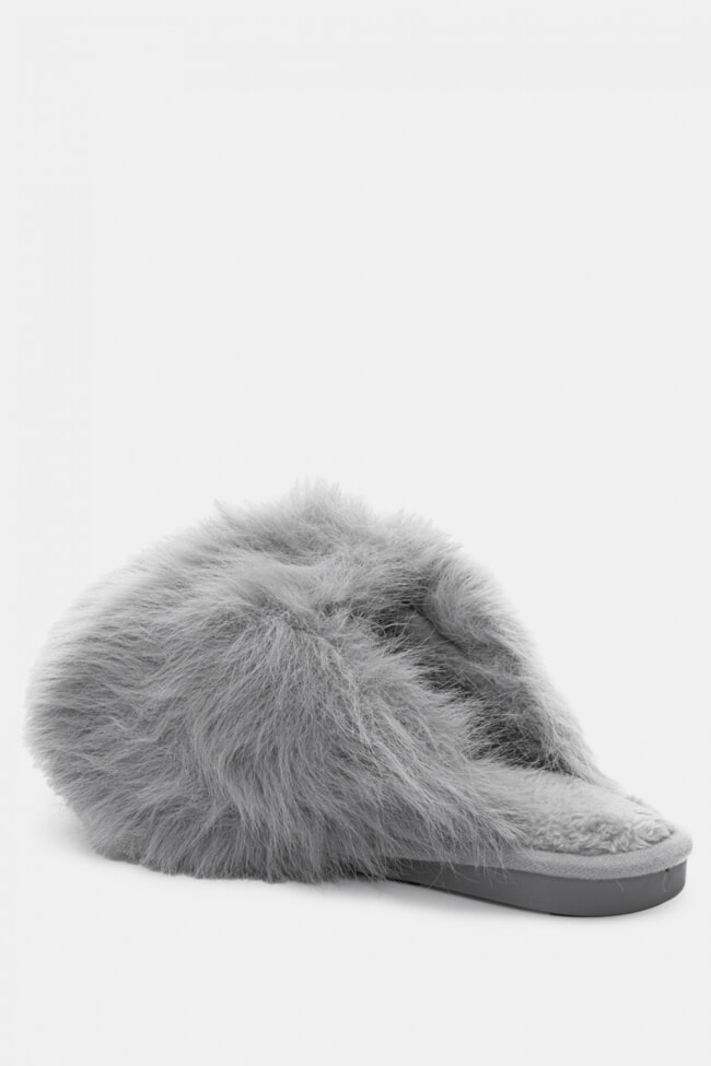 Pantofole di Pelliccia con Cinturini Incrociati