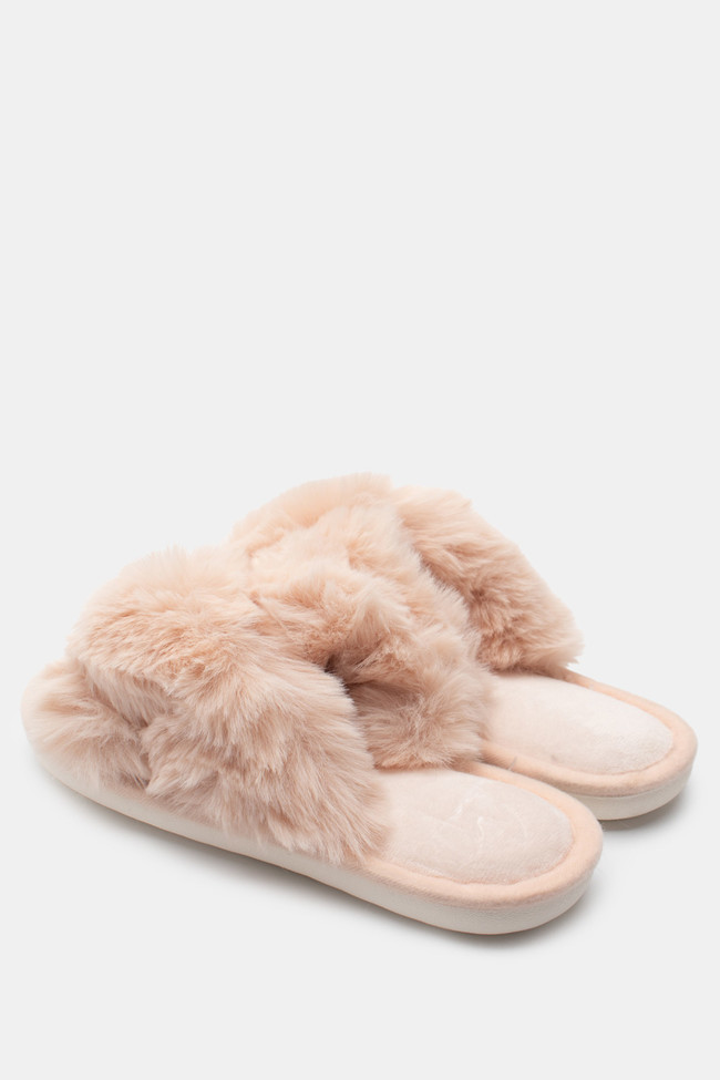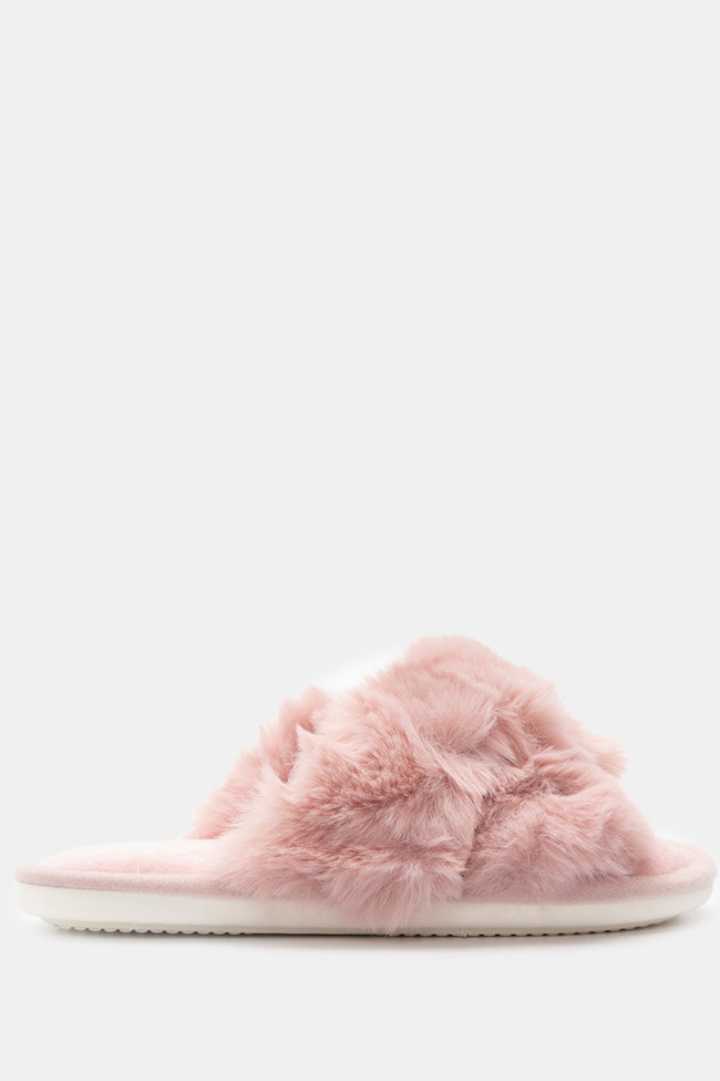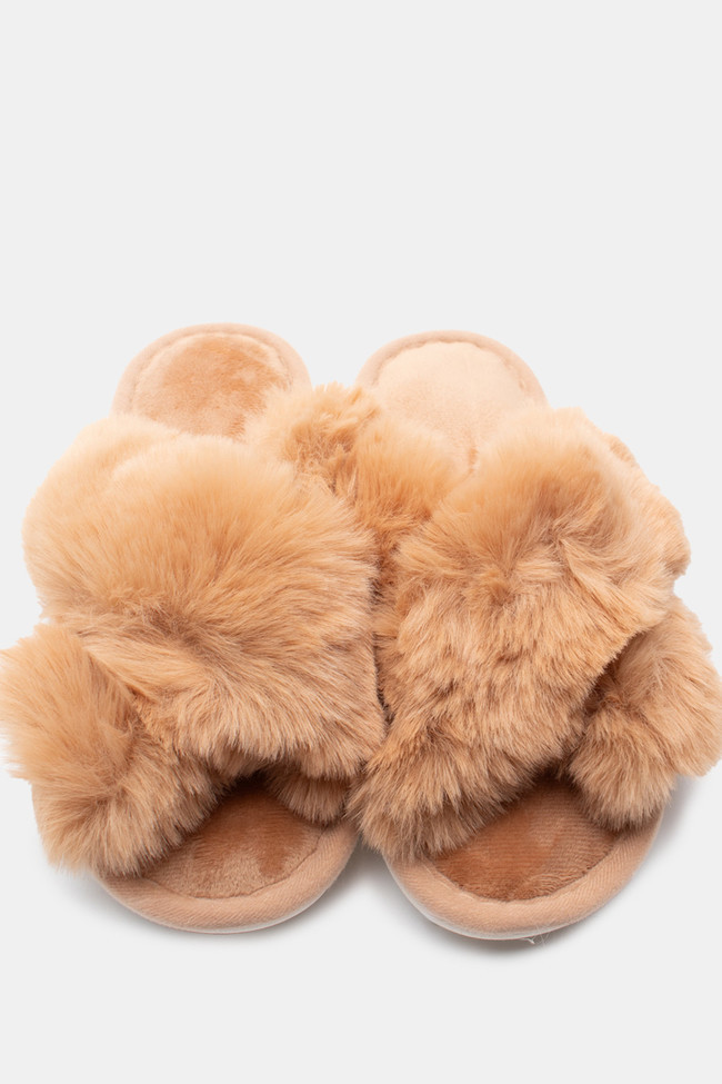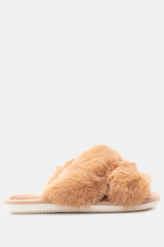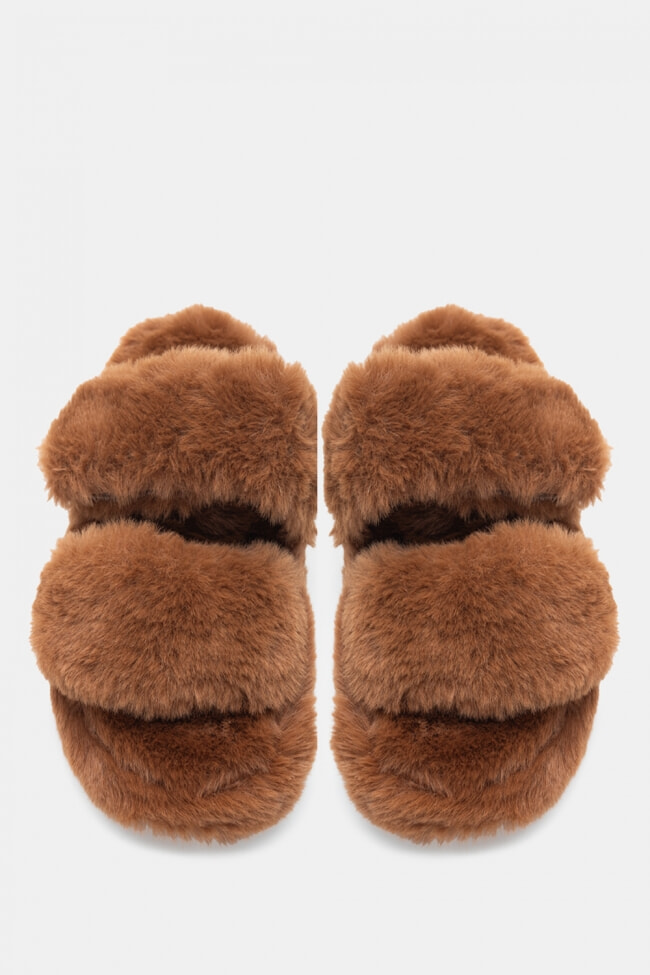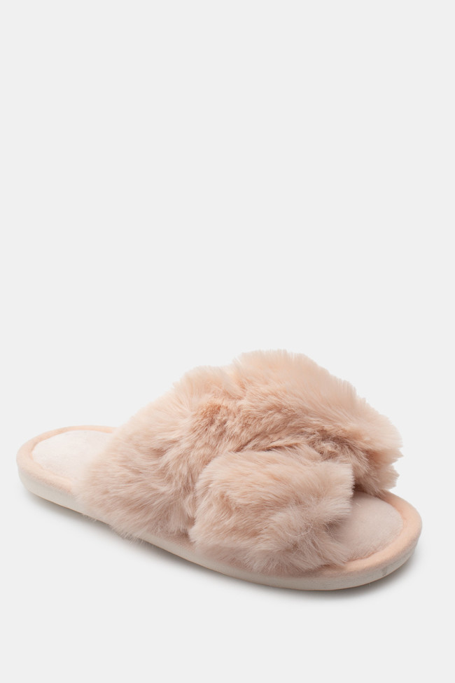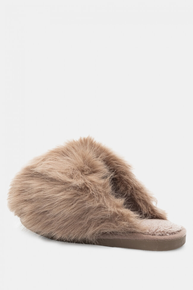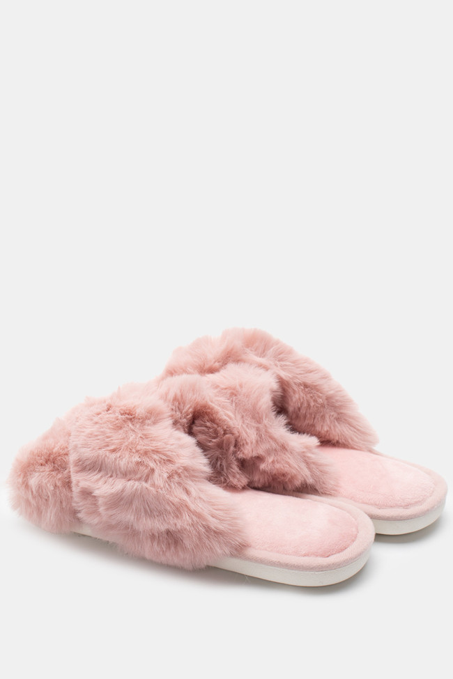 Pantofole di Pelliccia con Cinturini Incrociati