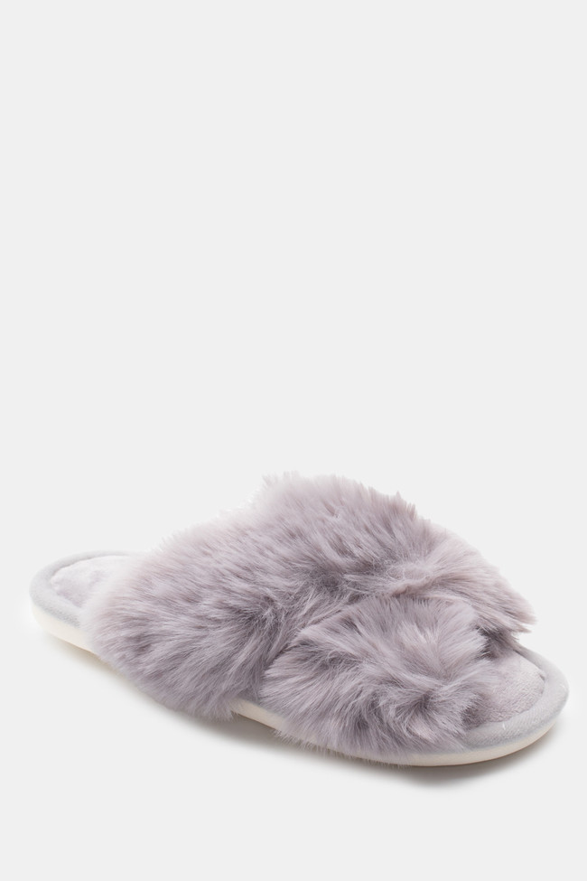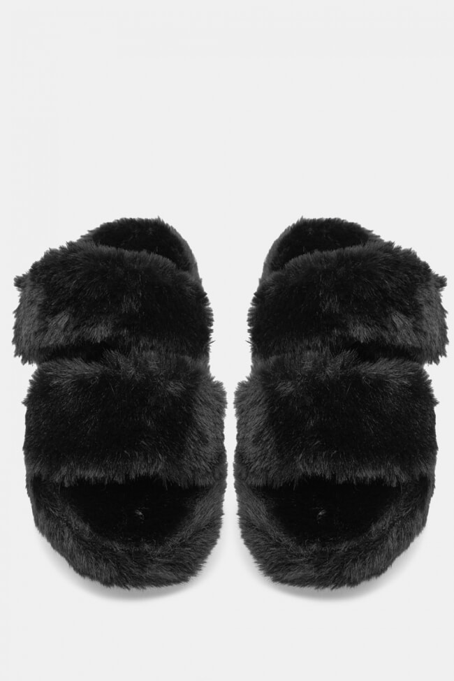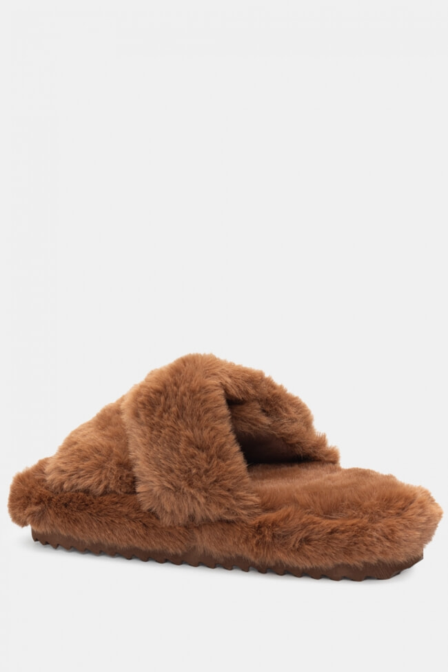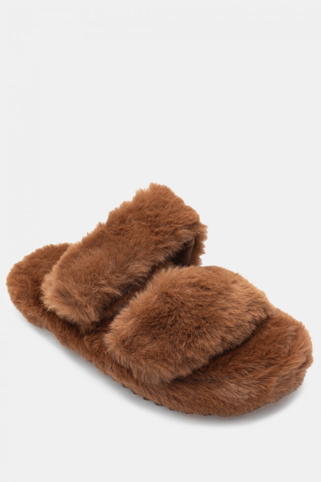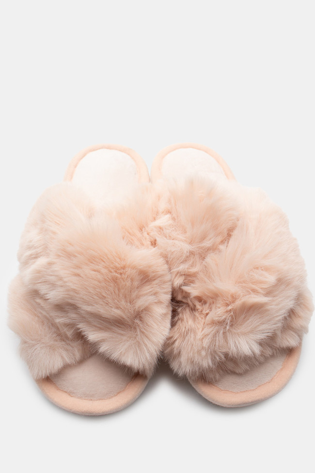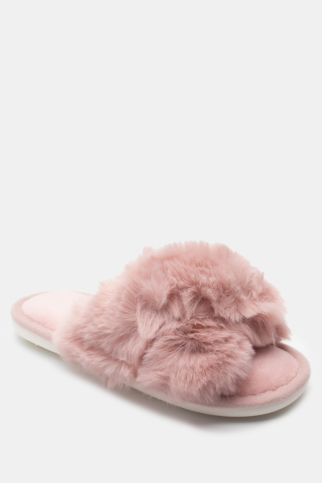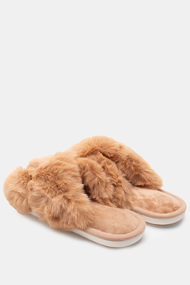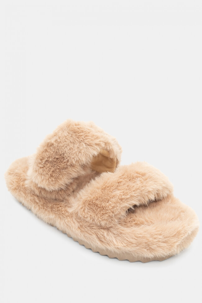 Pantofole di Pelliccia con Cinturini Incrociati