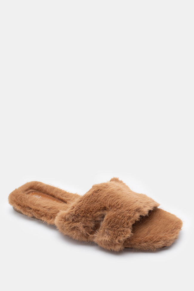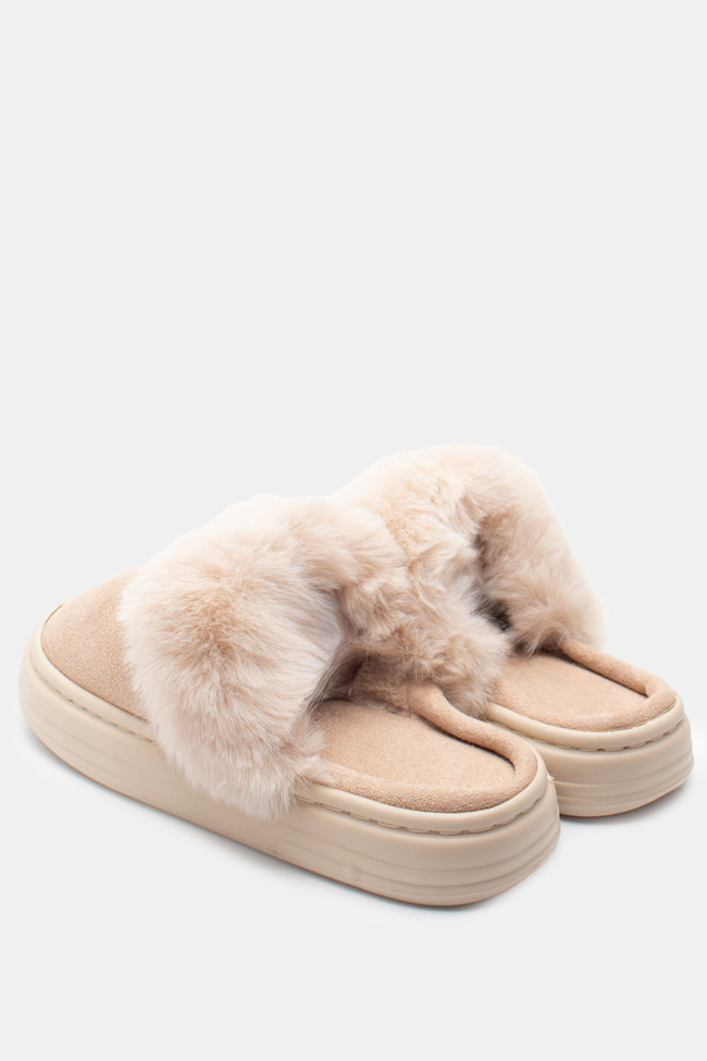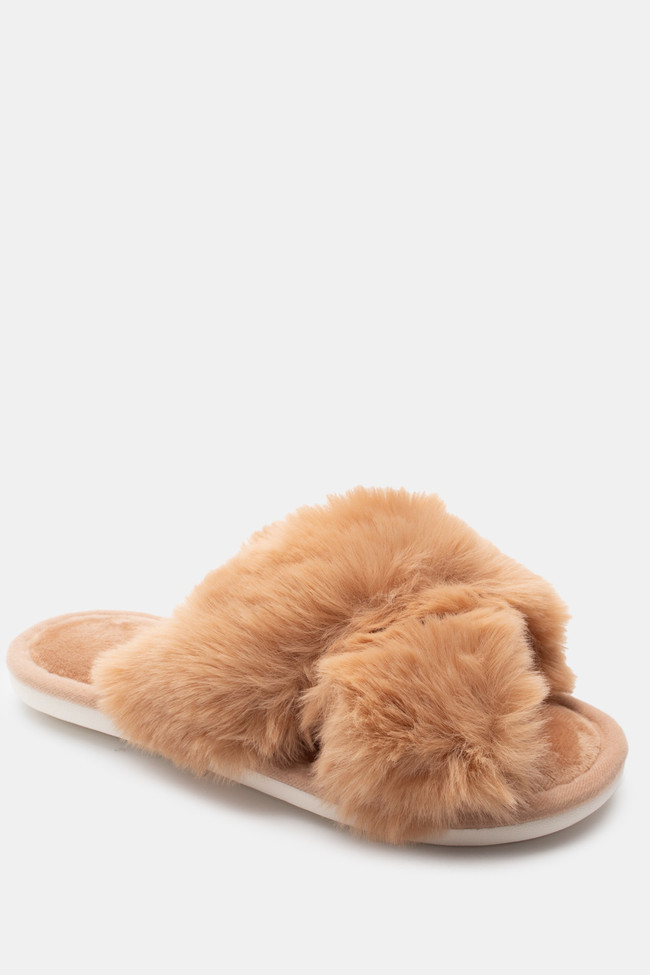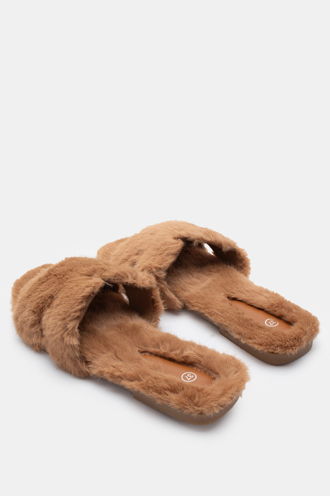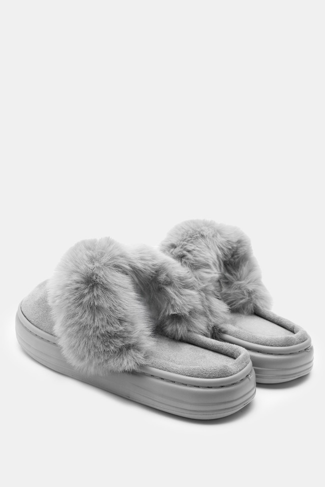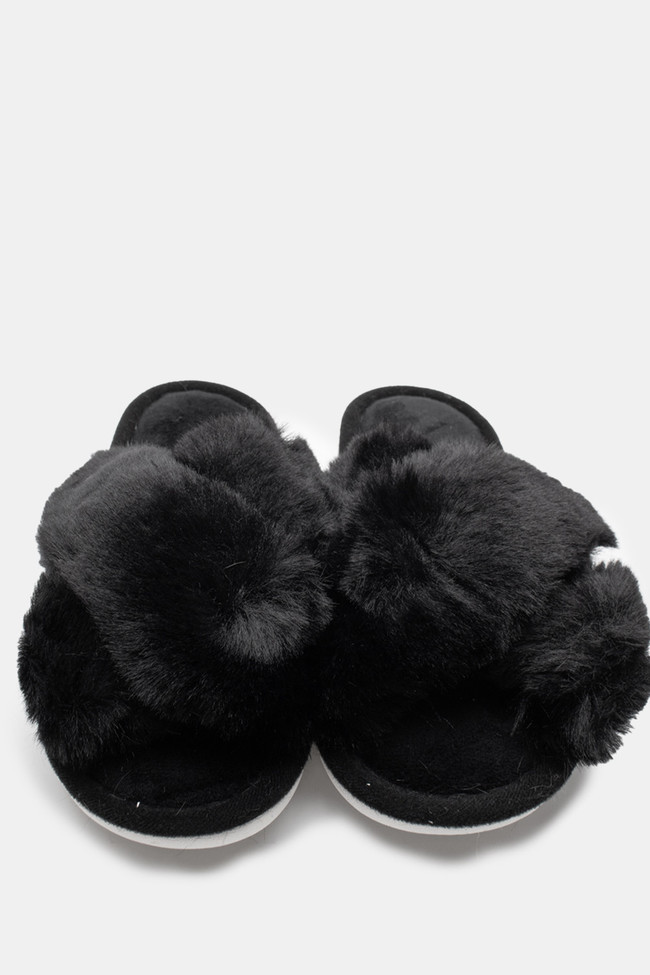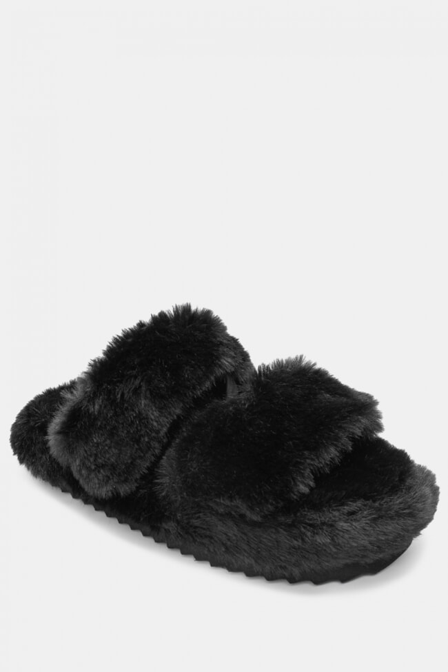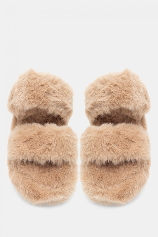 Pantofole di Pelliccia con Cinturini Incrociati