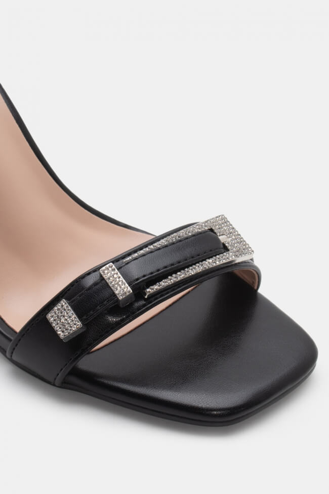 Το λεπτό τακούνι προσδίδει θηλυκότητα και sexy attitude στο σύνολό σου, ενώ τα στρας προσθέτουν μια λαμπερή πινελιά που μαγνητίζει τα βλέμματα.