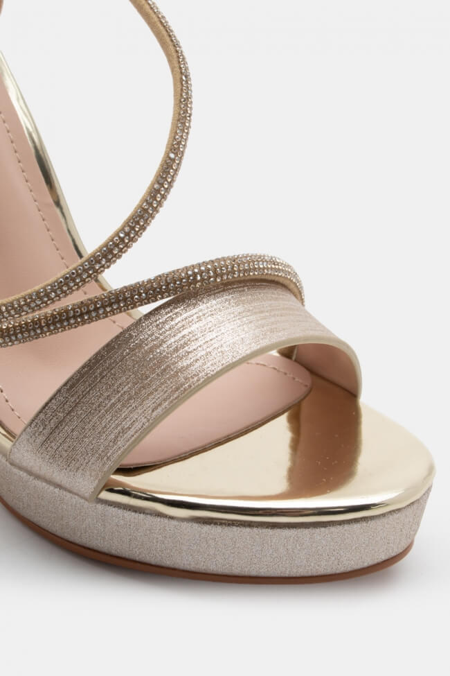 Το λεπτό τακούνι προσδίδει θηλυκότητα και sexy attitude στο σύνολό σου, ενώ τα στρας προσθέτουν μια λαμπερή πινελιά που μαγνητίζει τα βλέμματα.
