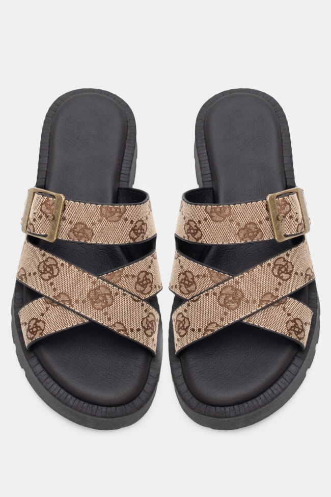 Σανδάλια Flatform με Διπλές Τόκες & Διακοσμητικό
