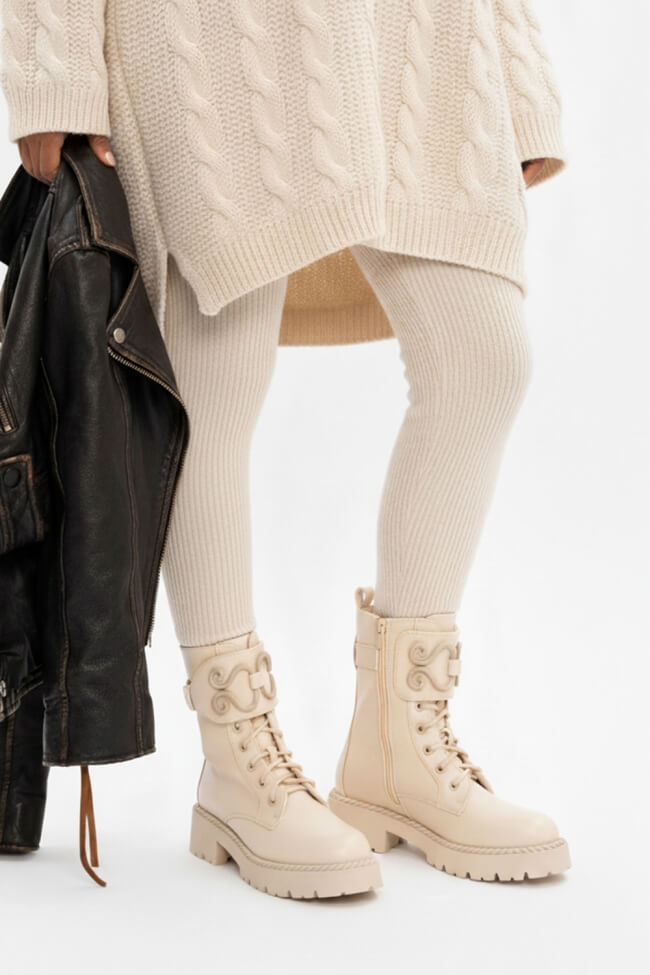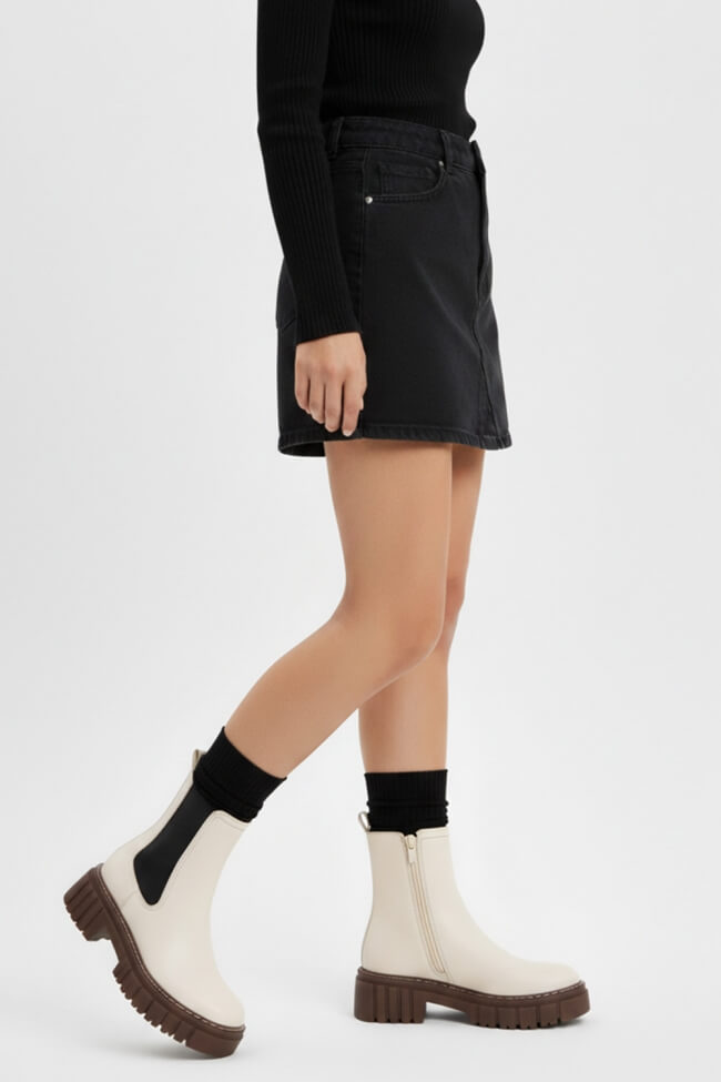 Botine cu Platformă Dublă cu Căptușeală de Blană & Lanț Decorativ