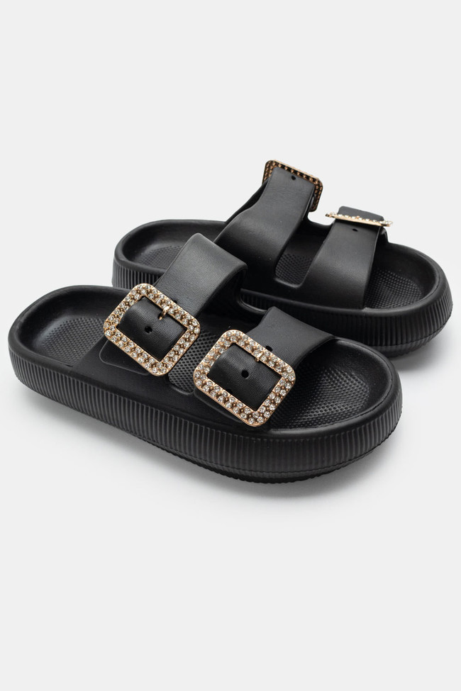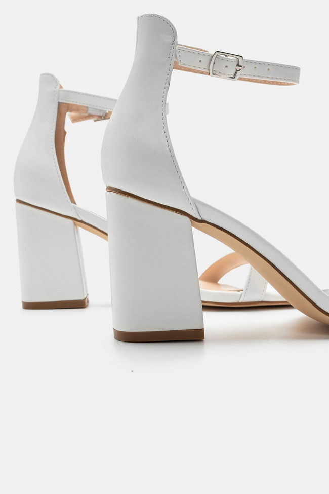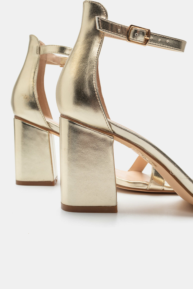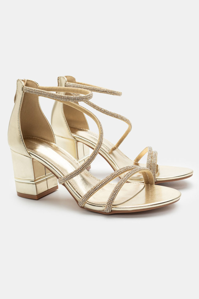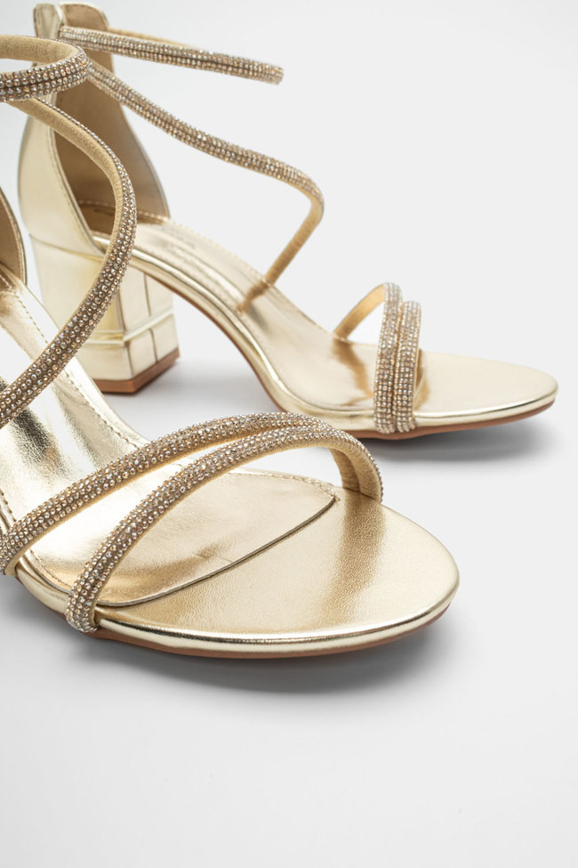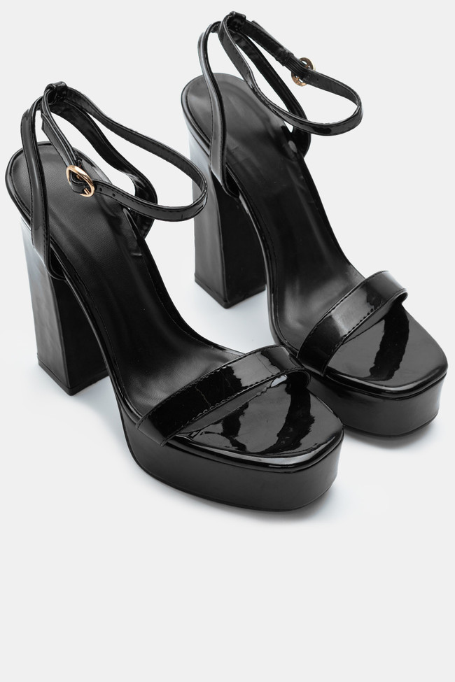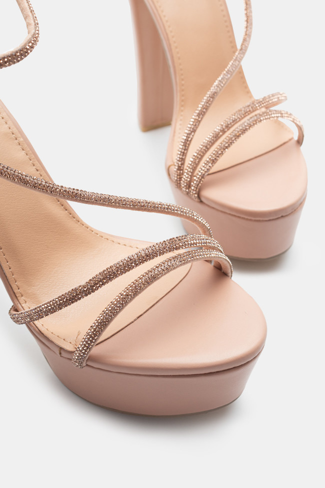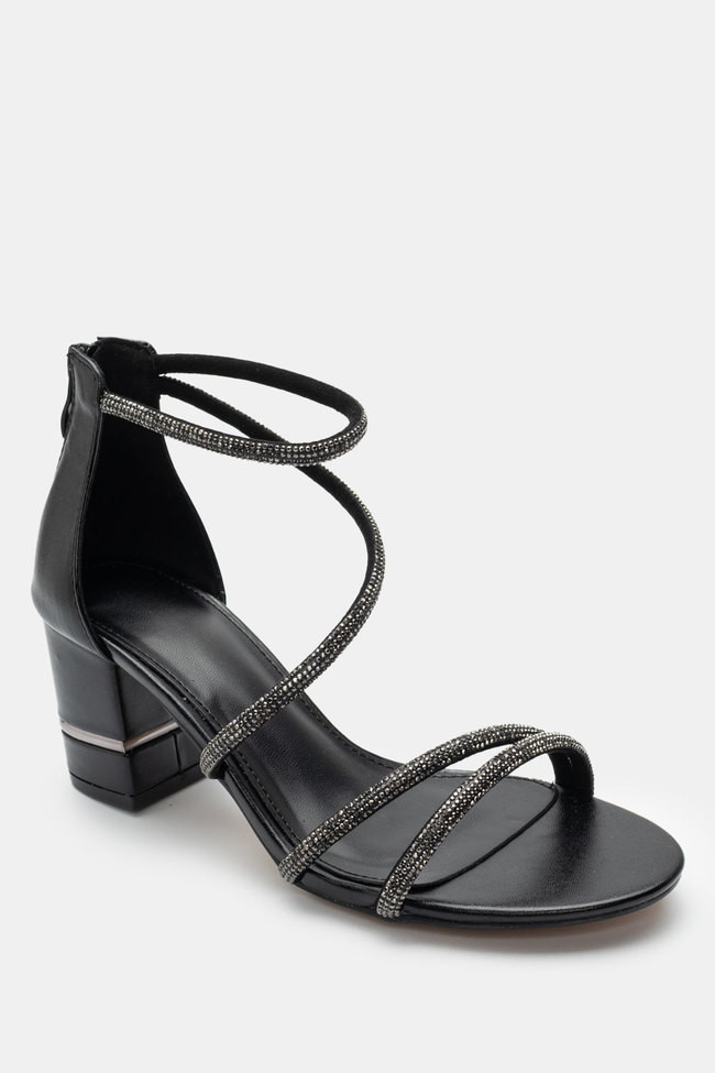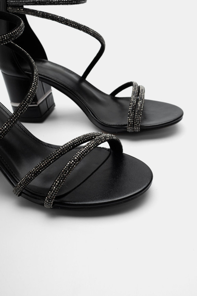 Сатенени обувки на ток със закопчалка от декоративни камъни