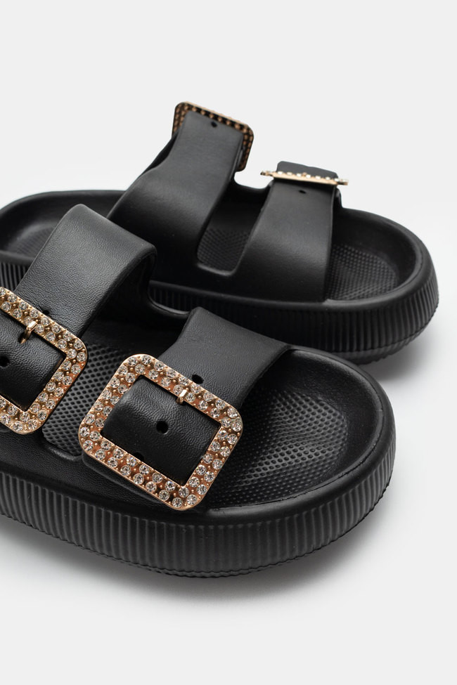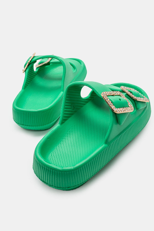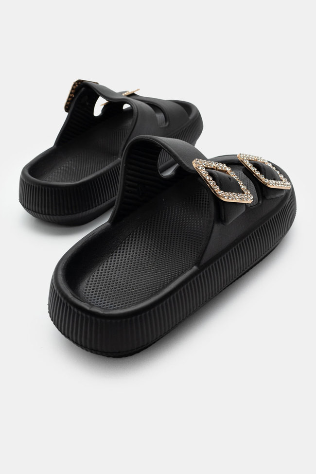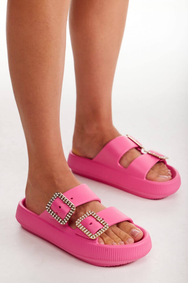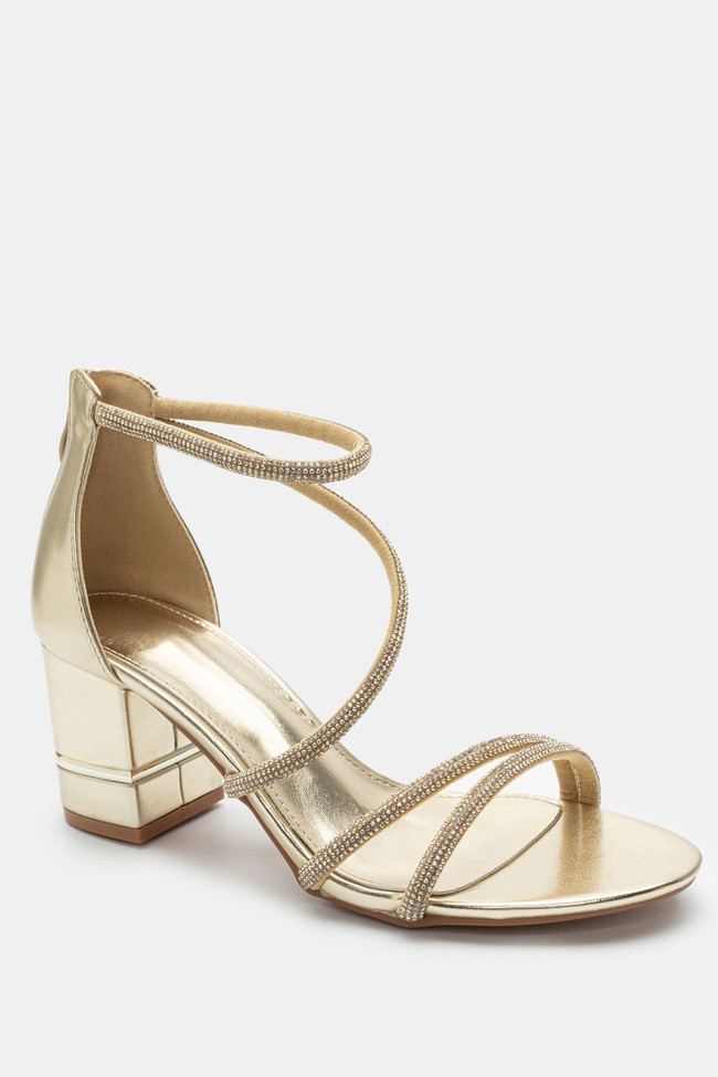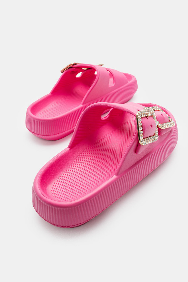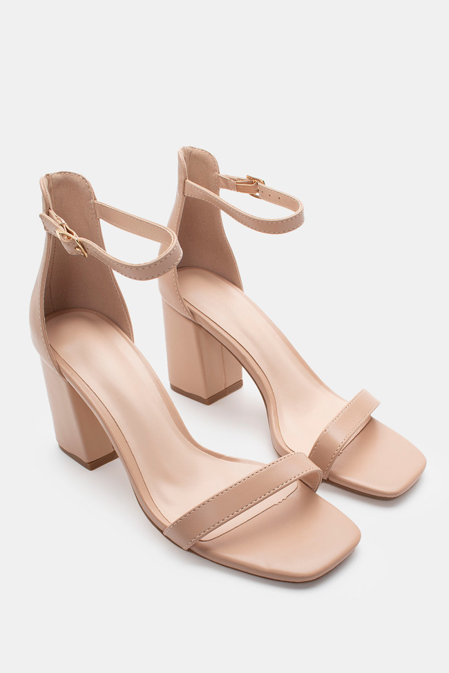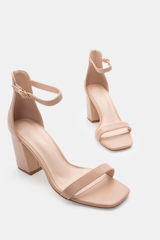 Сатенени обувки на ток със закопчалка от декоративни камъни
