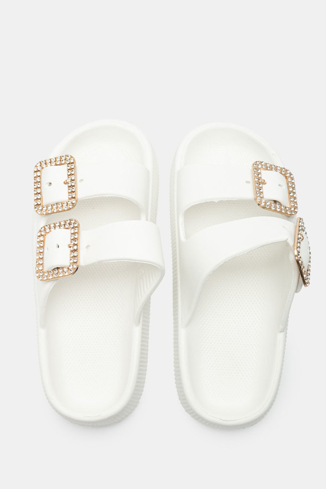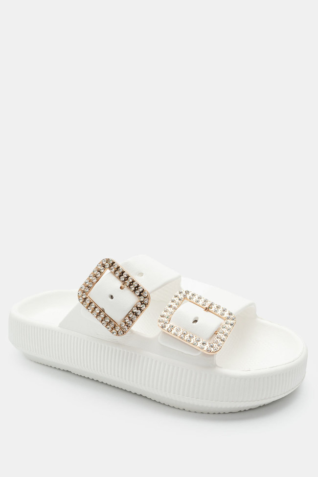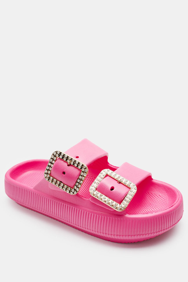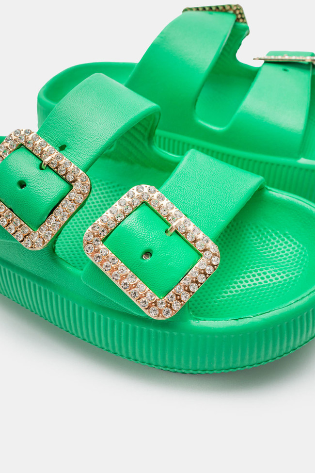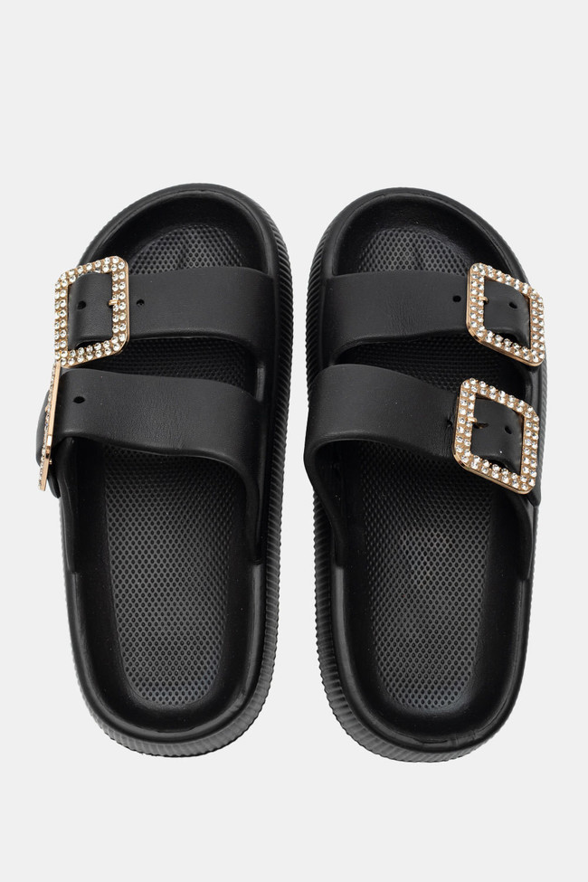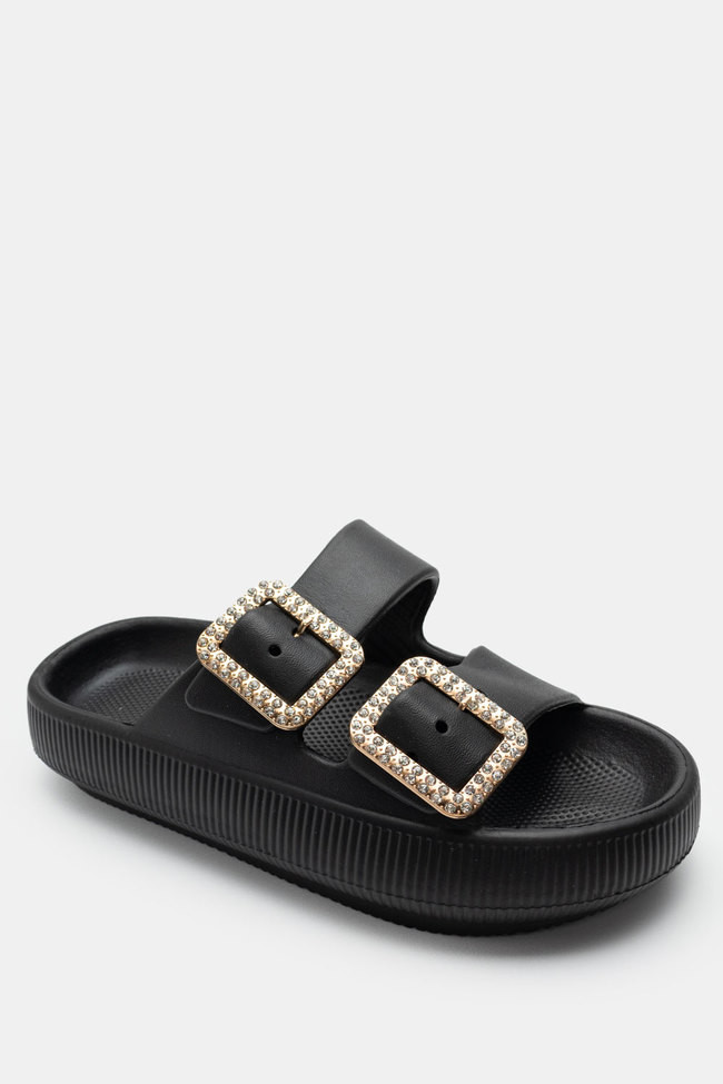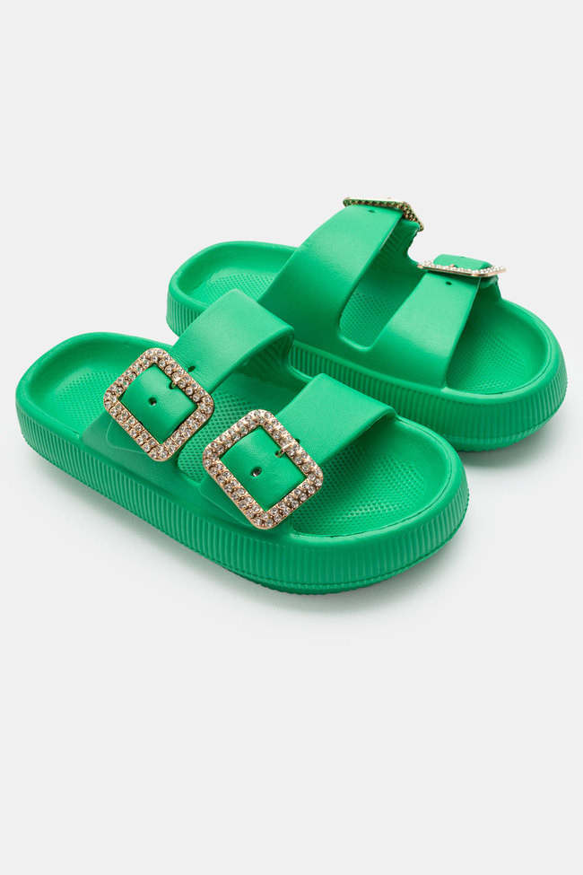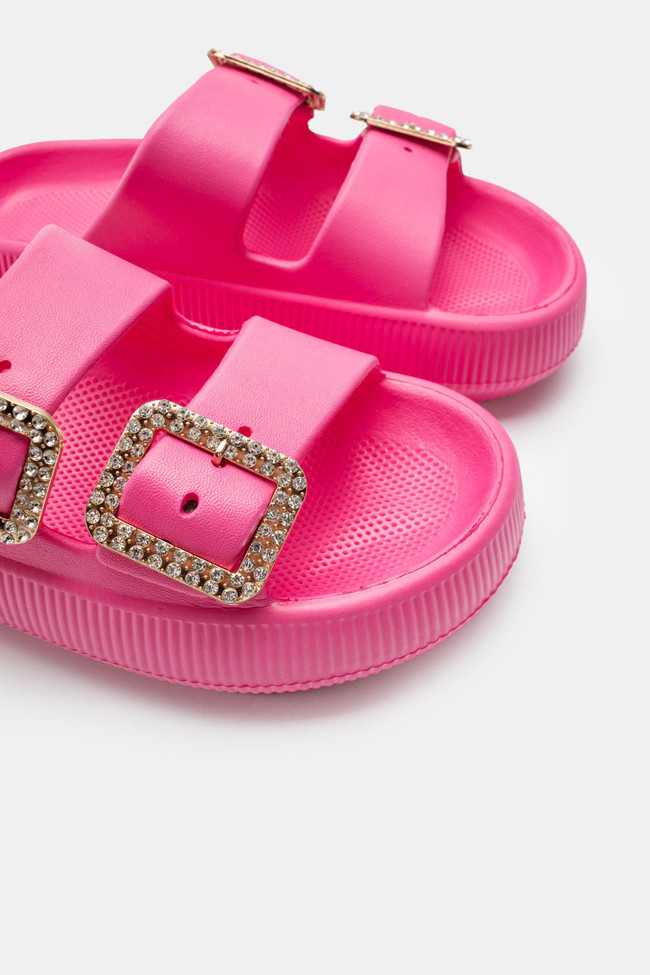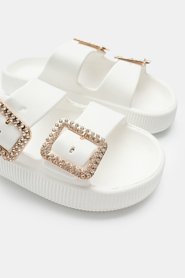 Сатенени обувки на ток със закопчалка от декоративни камъни