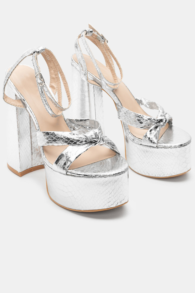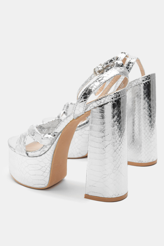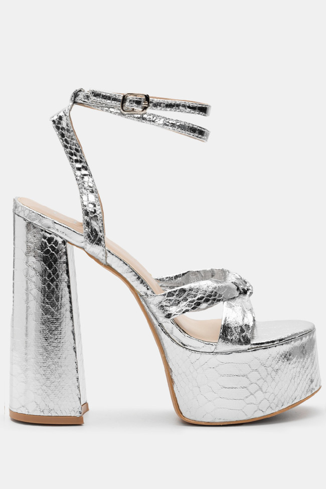 Sandale cu Toc și Platformă, Imprimeu cu Șarpe