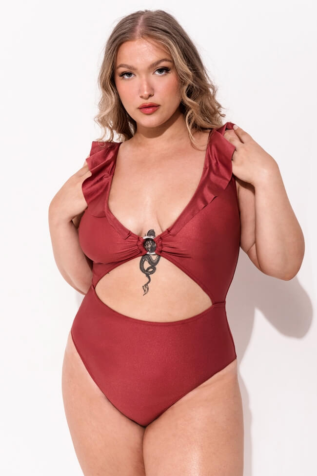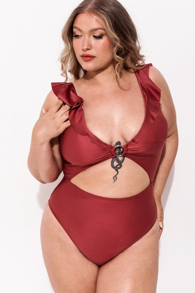 GIGI-Costum de Baie Întreg cu Volane la Mâneci